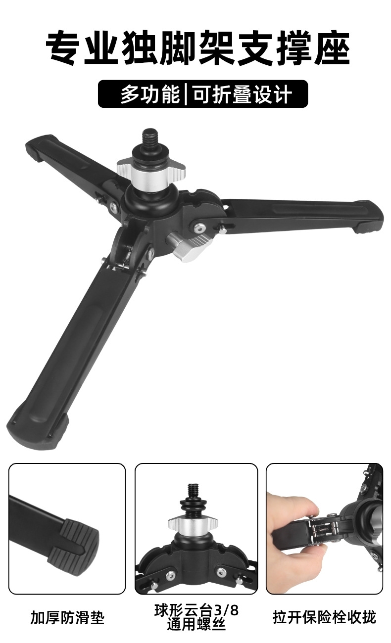 新款三角撑独脚架三脚撑底座支撑腿加长便携反折单脚架稳定器支架