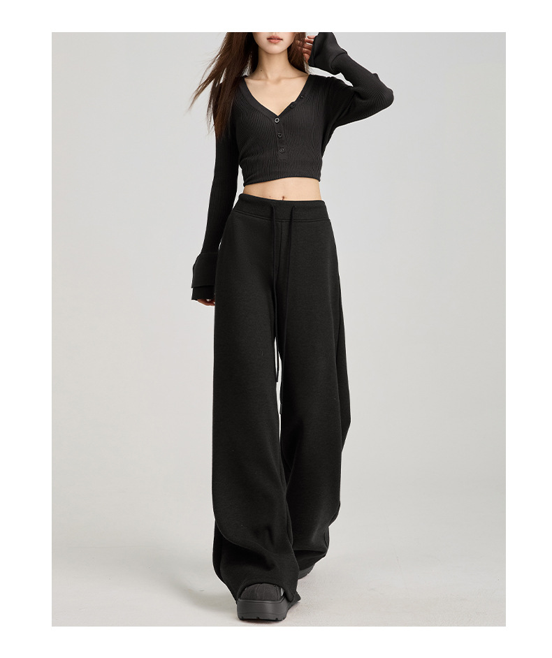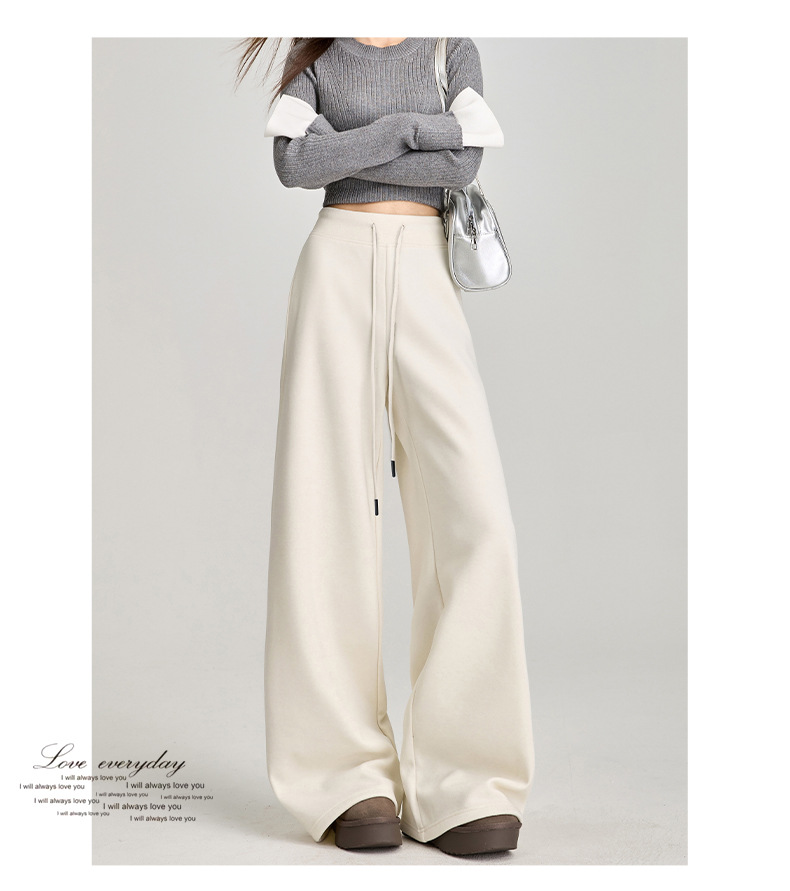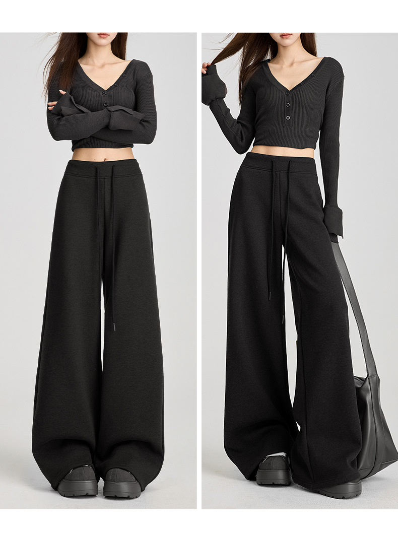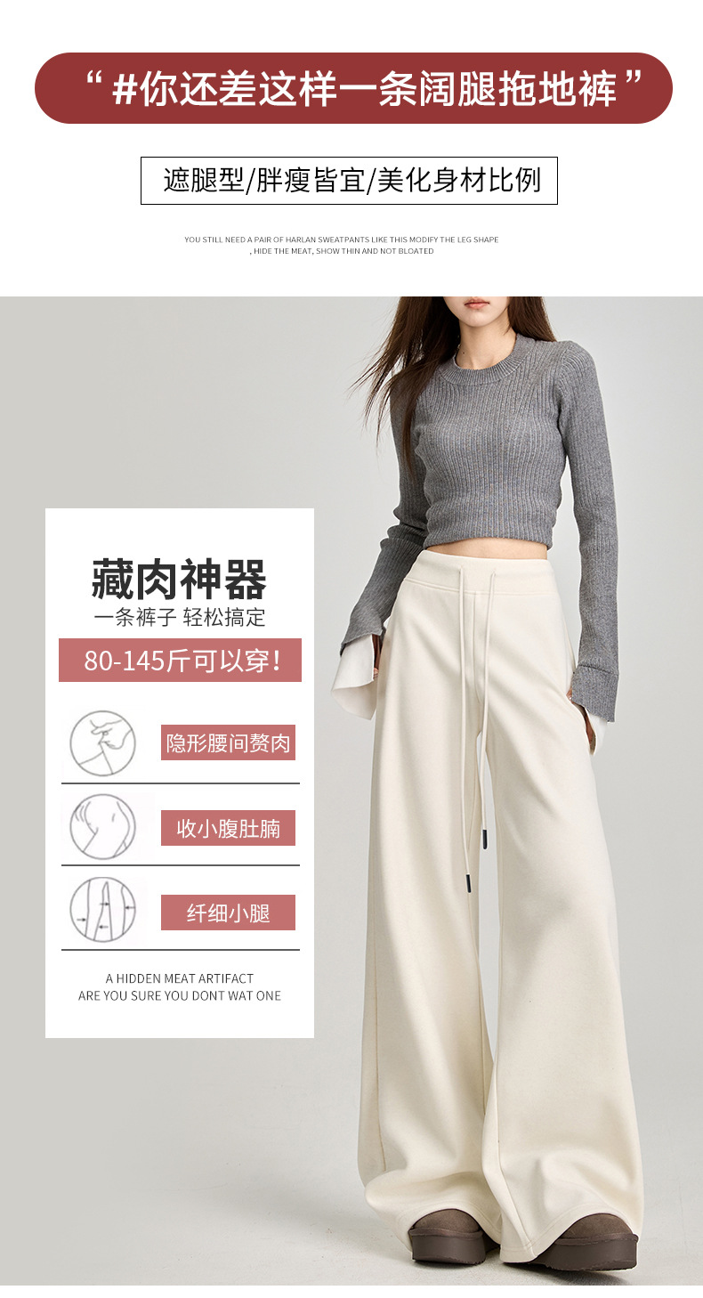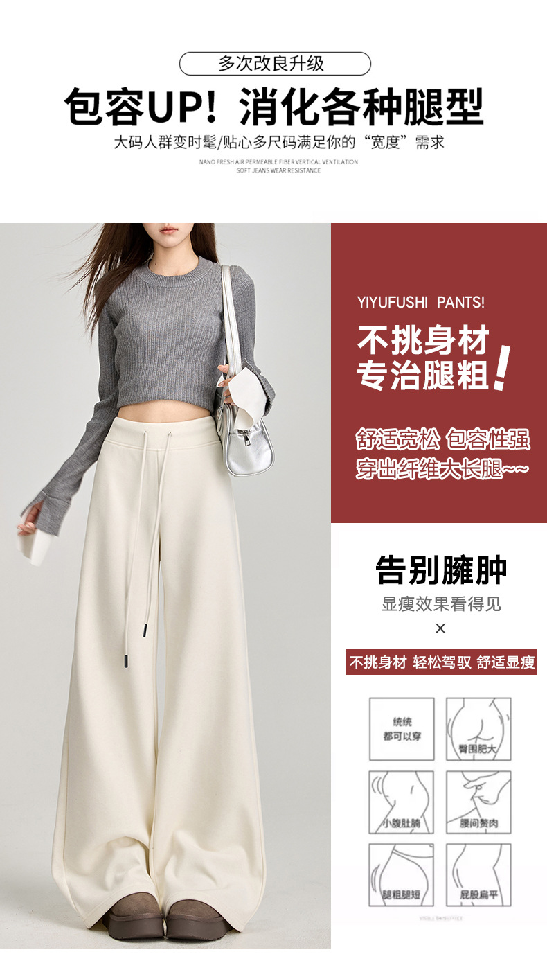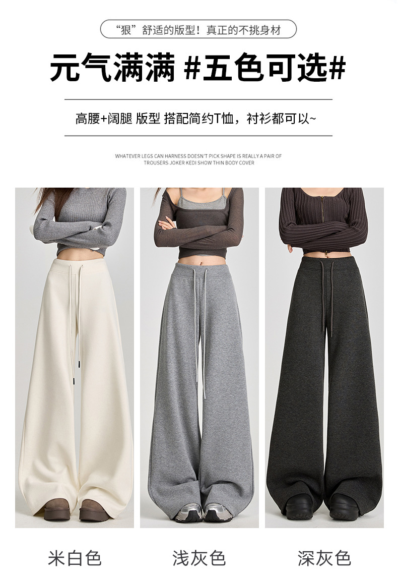 慵懒风高腰垂感阔腿裤显瘦百搭直筒裤2025秋冬新款加绒加厚休闲裤