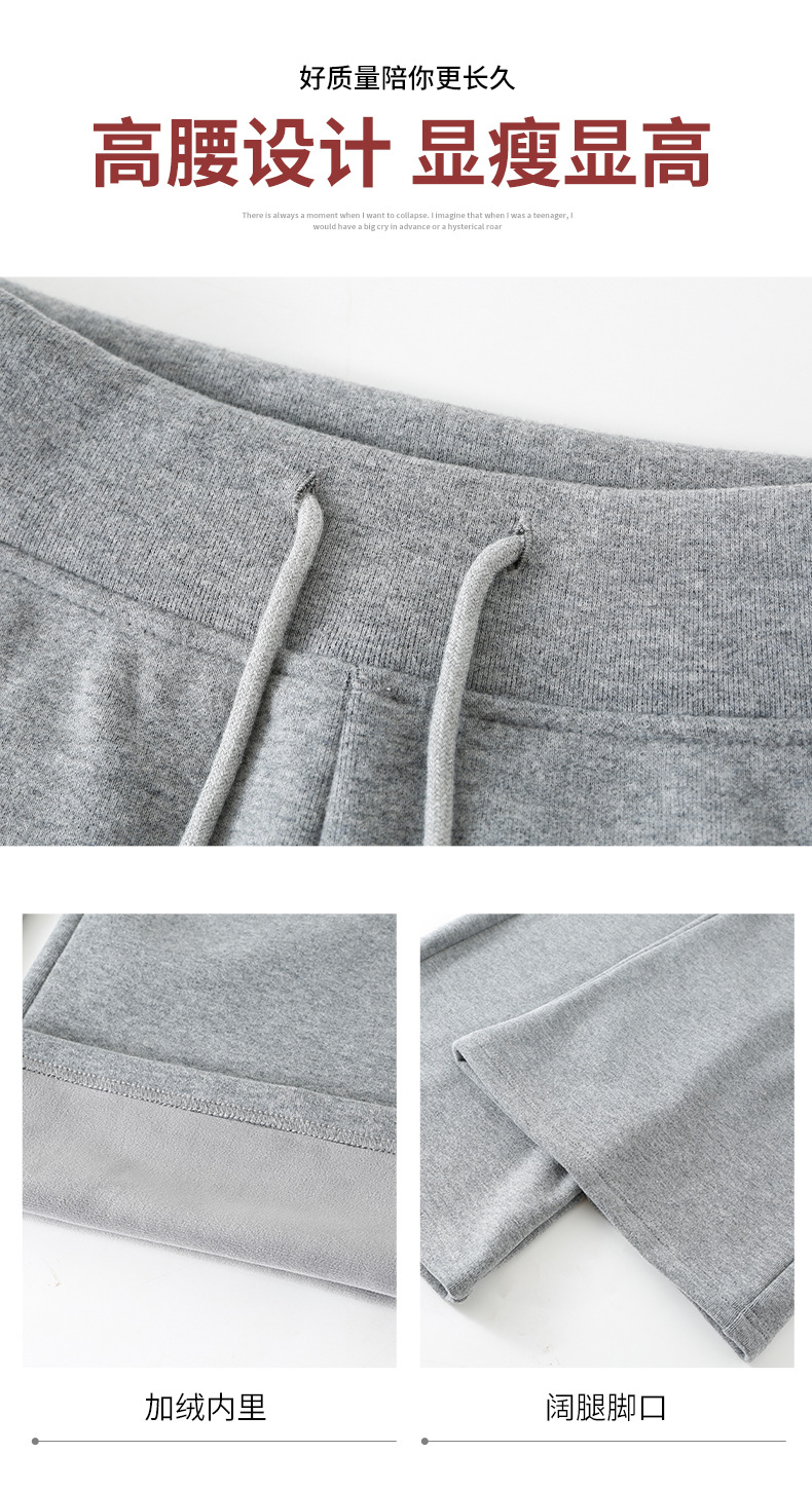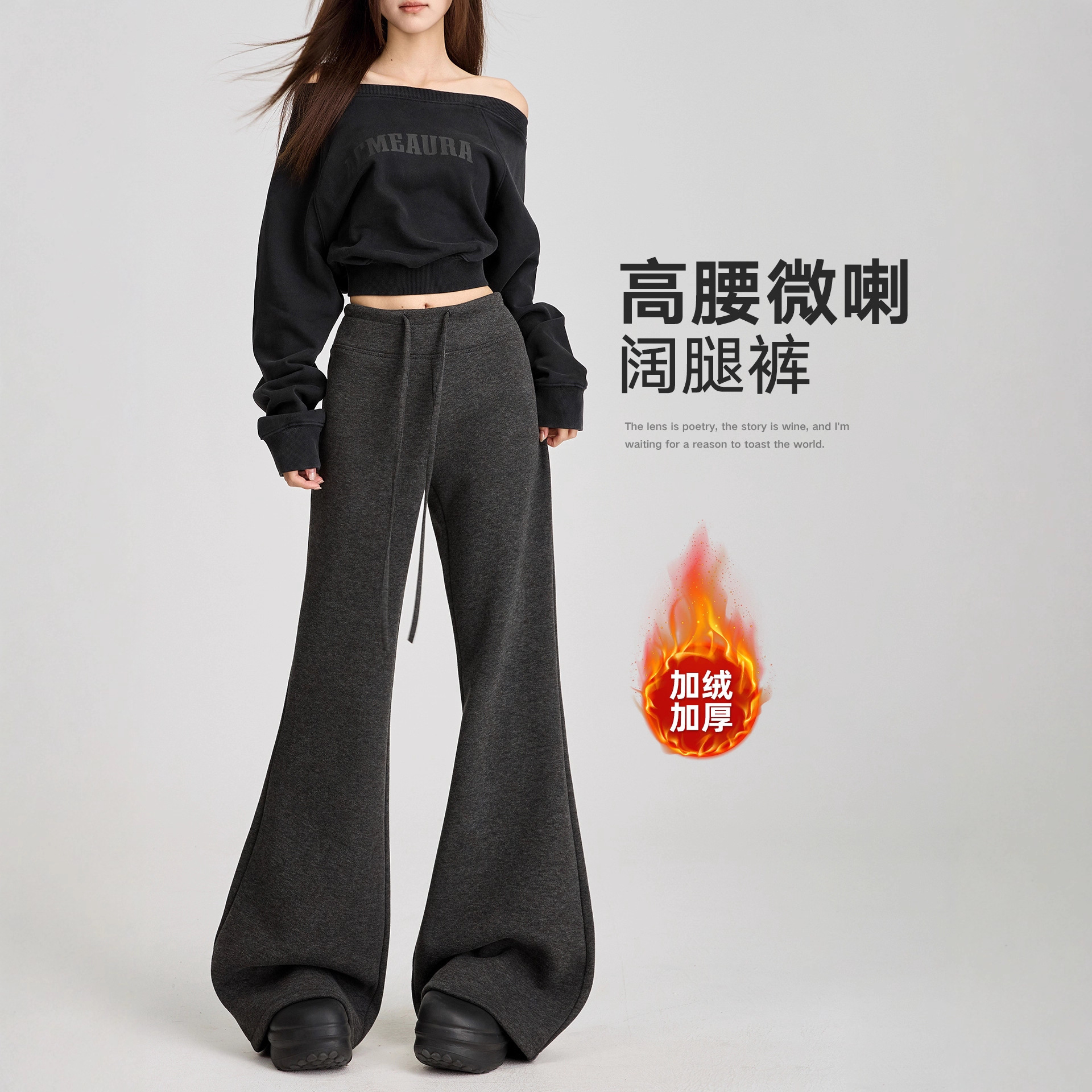 加绒美式休闲微喇裤卫裤女秋冬宽松高腰抽绳直筒运动裤高腰阔腿裤