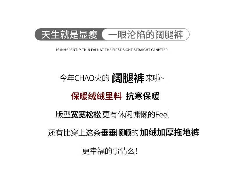 加绒裤子女冬小个子宽松休闲阔腿裤显瘦百搭裤子冬季加厚保暖裤子