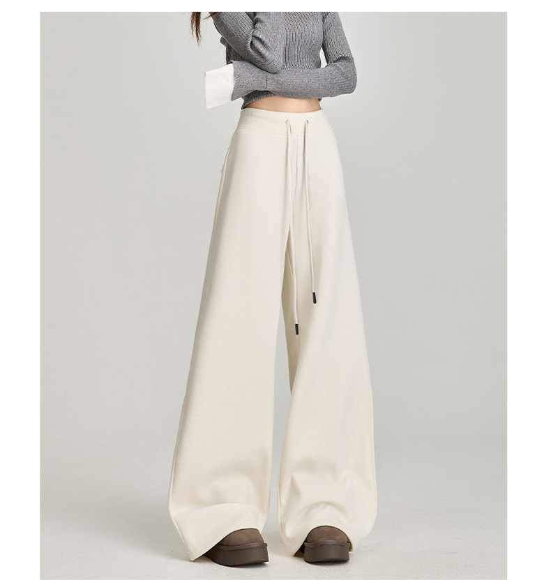 春と秋のもち米のズボンの秋冬のベルベットの広い足のズボンの女性のゆったりした高腰の垂れ下がった感じのまっすぐな筒の白いカジュアルなズボンの百合の狭い版