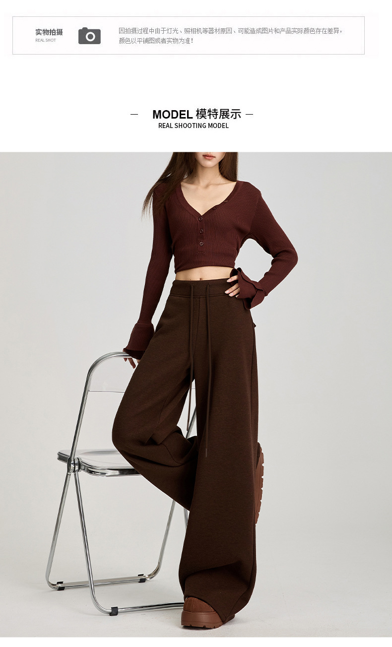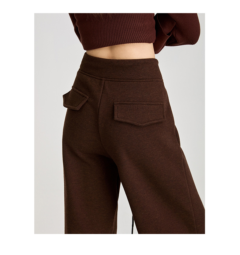 咖色设计感高腰阔腿裤女显瘦百搭直筒裤秋冬新款加绒休闲裤日韩风