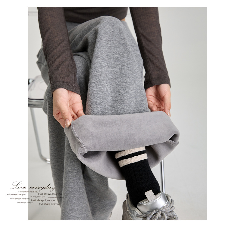 加绒浅灰色阔腿休闲微喇女秋冬新款美式喇叭裤女宽松高腰运动裤子