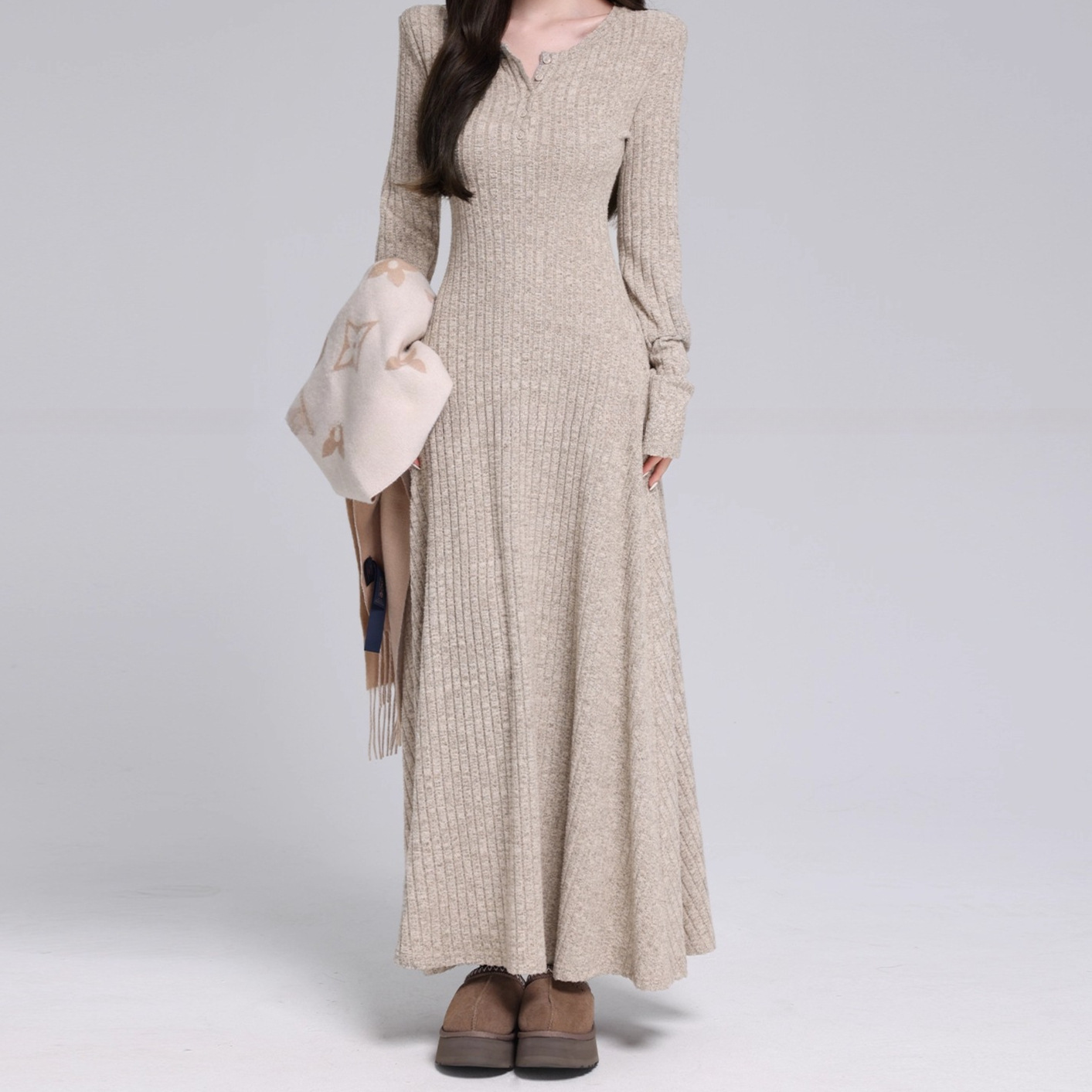 【工厂直销】现货2025冬 磨毛坑条针织连衣裙气质收腰款女装其它