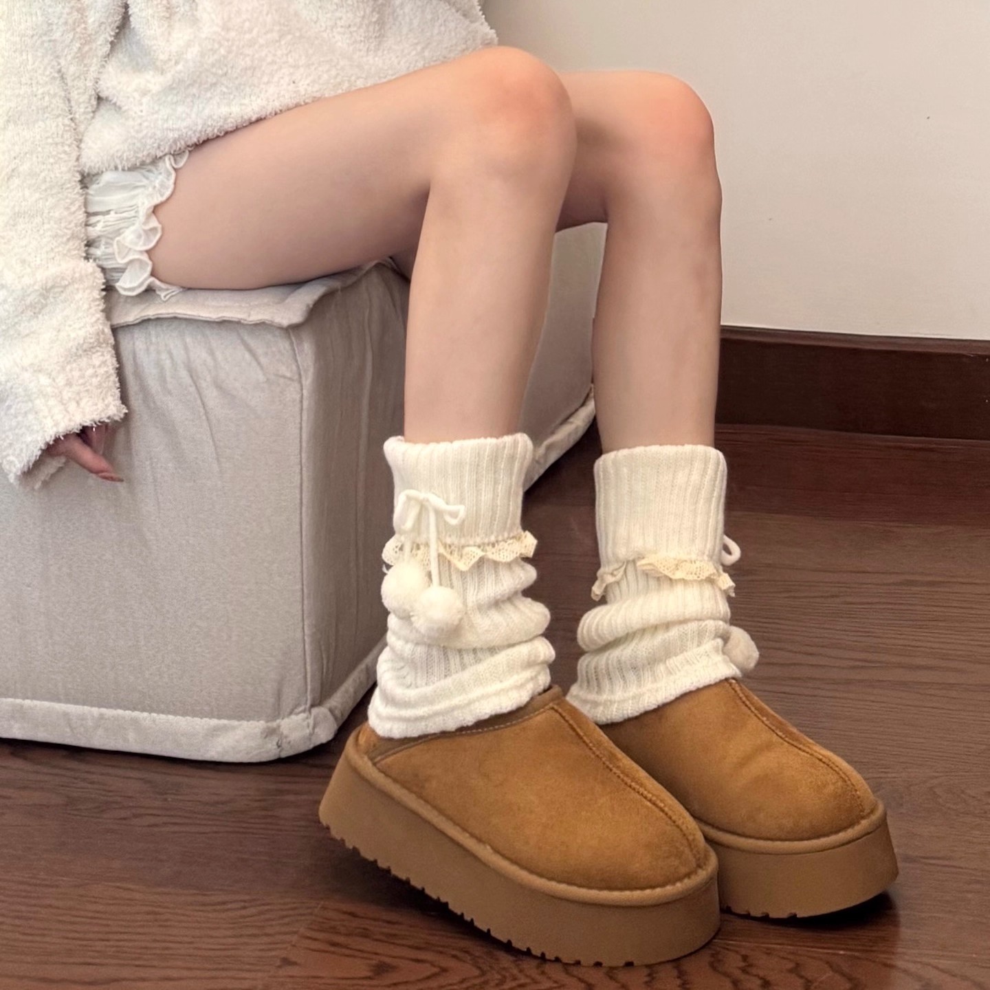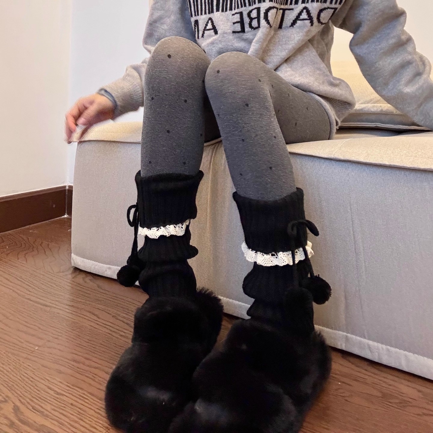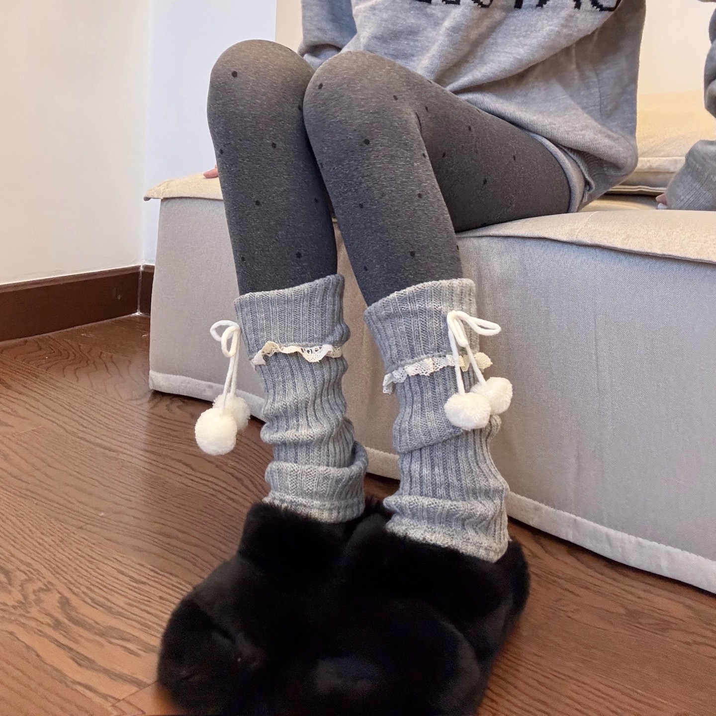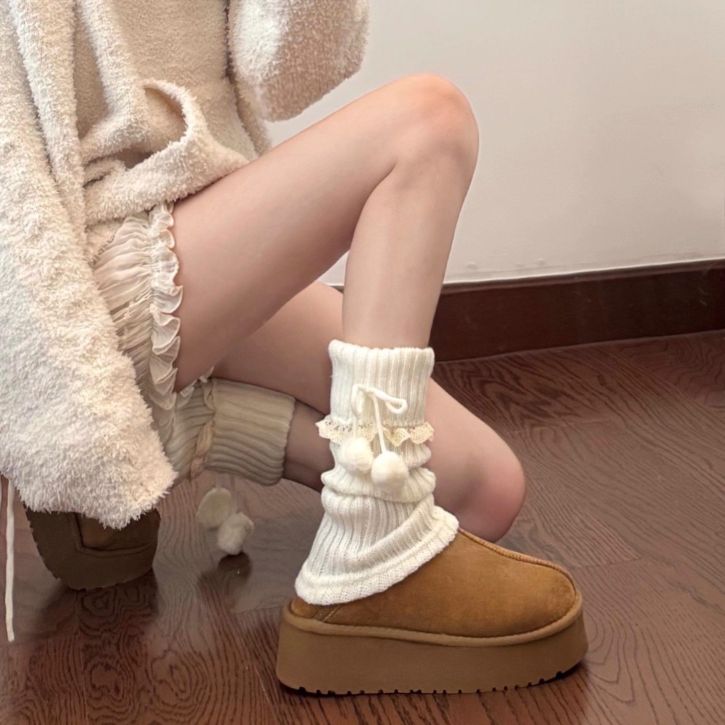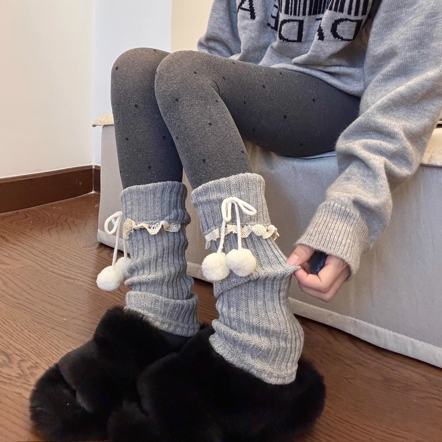 秋冬针织球球袜套秋冬加厚保暖JK洛丽塔少女花边堆堆袜显瘦小腿套