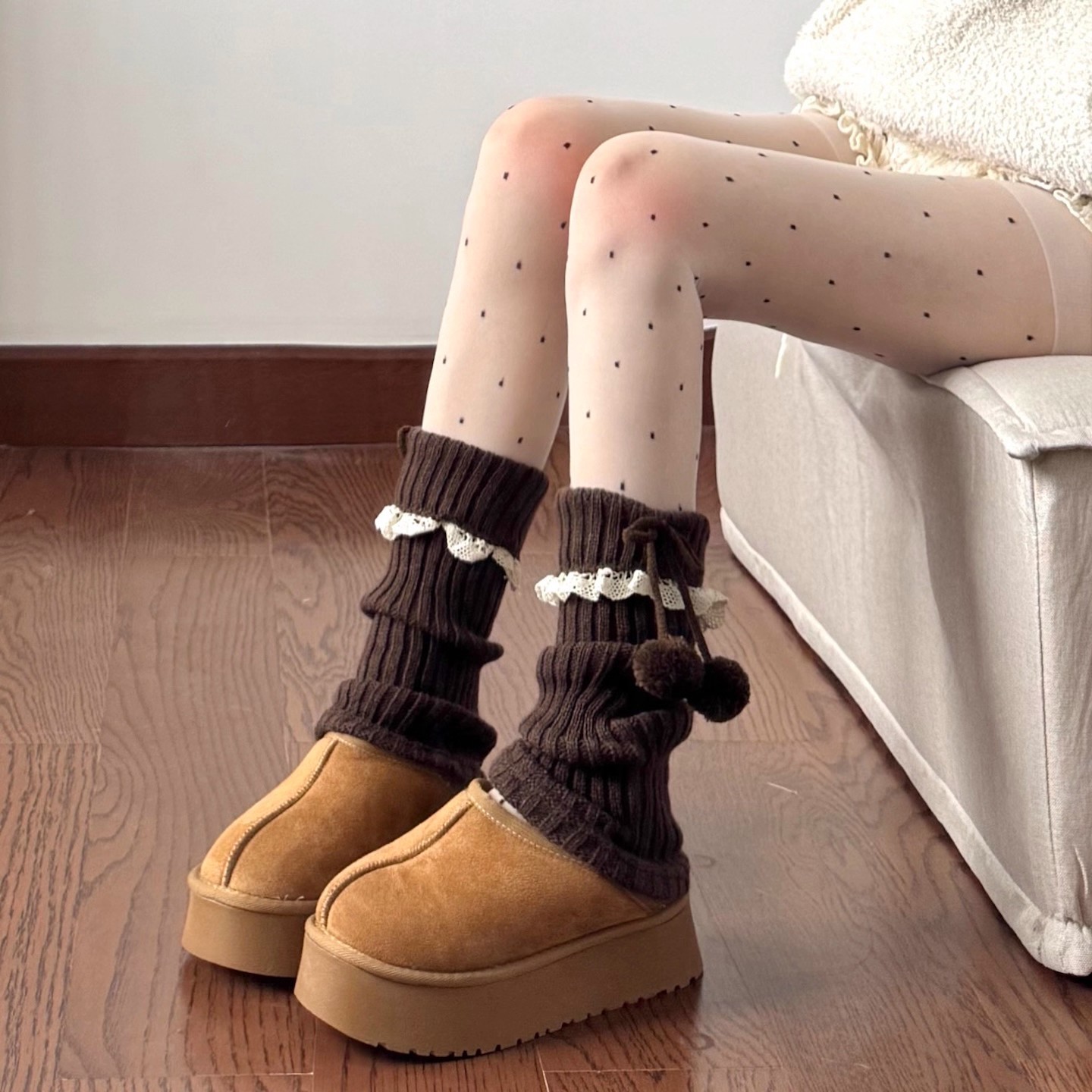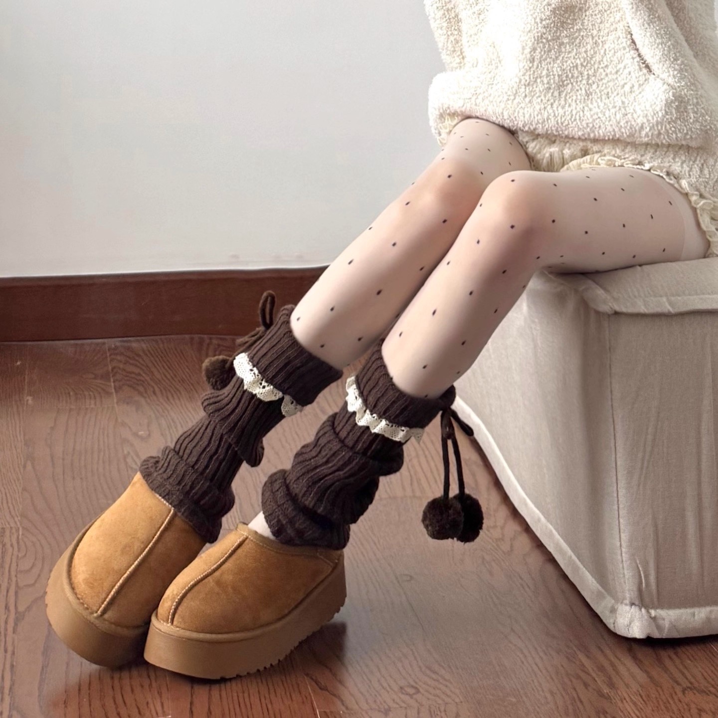 靴尚棉袜套女翻边球球蝴蝶结堆堆袜洛丽塔少女花边咖色秋冬小腿套