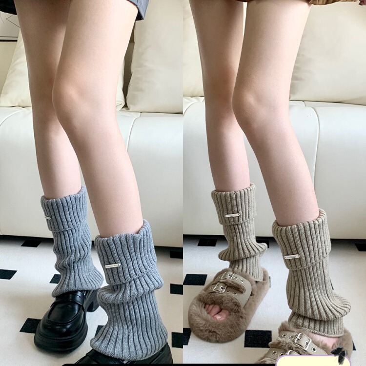 ロリータ風ニットソックスカバー 女性用 日本風 JK風 カーフソックス 脚の形を整えるソックス レッグカバー 細く見せる 脚の形を隠す