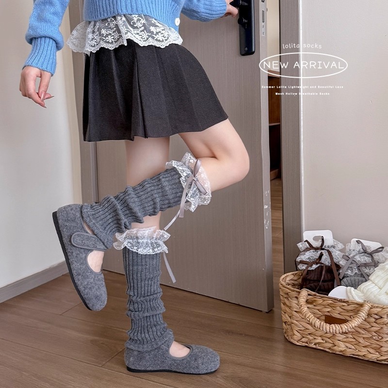 蕾丝花边蝴蝶结袜套女甜美日系针织jk小腿套百搭堆堆袜拼接芭蕾风