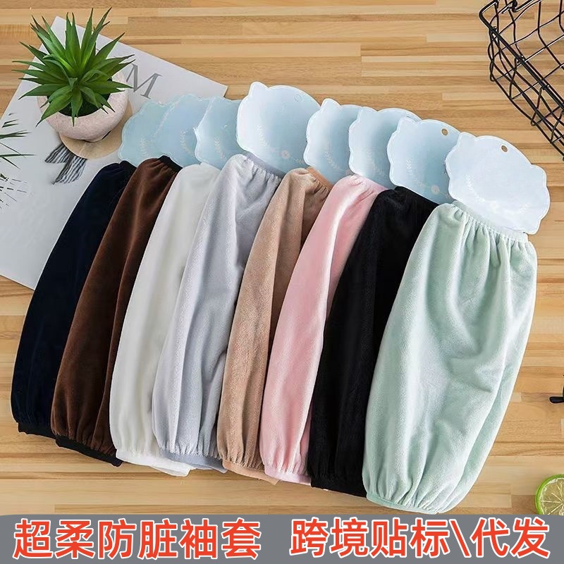 秋冬純色パイル真珠袖カバーオフィス家事汚れ防止カバー袖ダウンジャケット綿袖防汚カバー袖