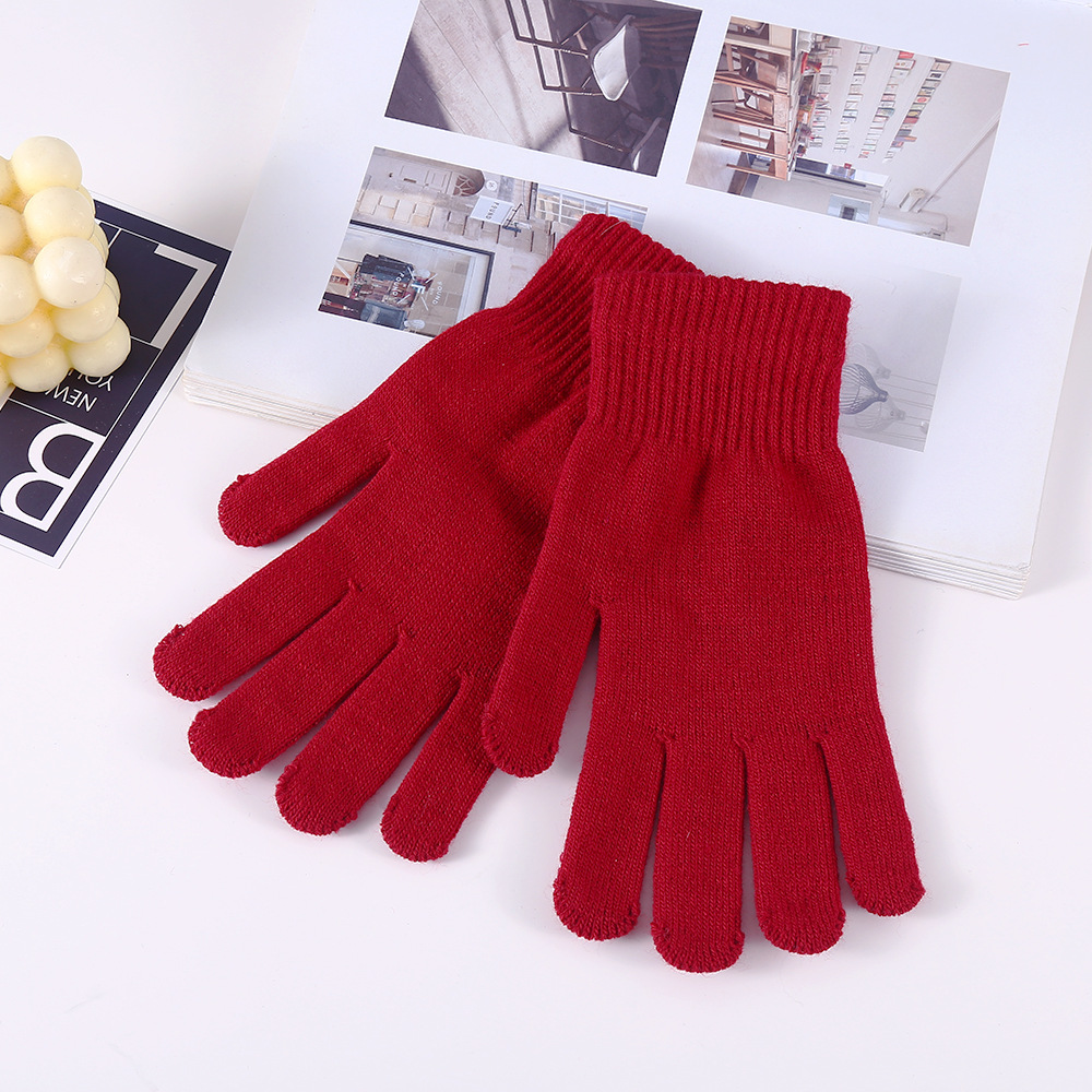 国境を越えて起爆した秋冬手袋の純色のベルベット保温五本指手袋メリヤス弾力アクリル全指手袋成人