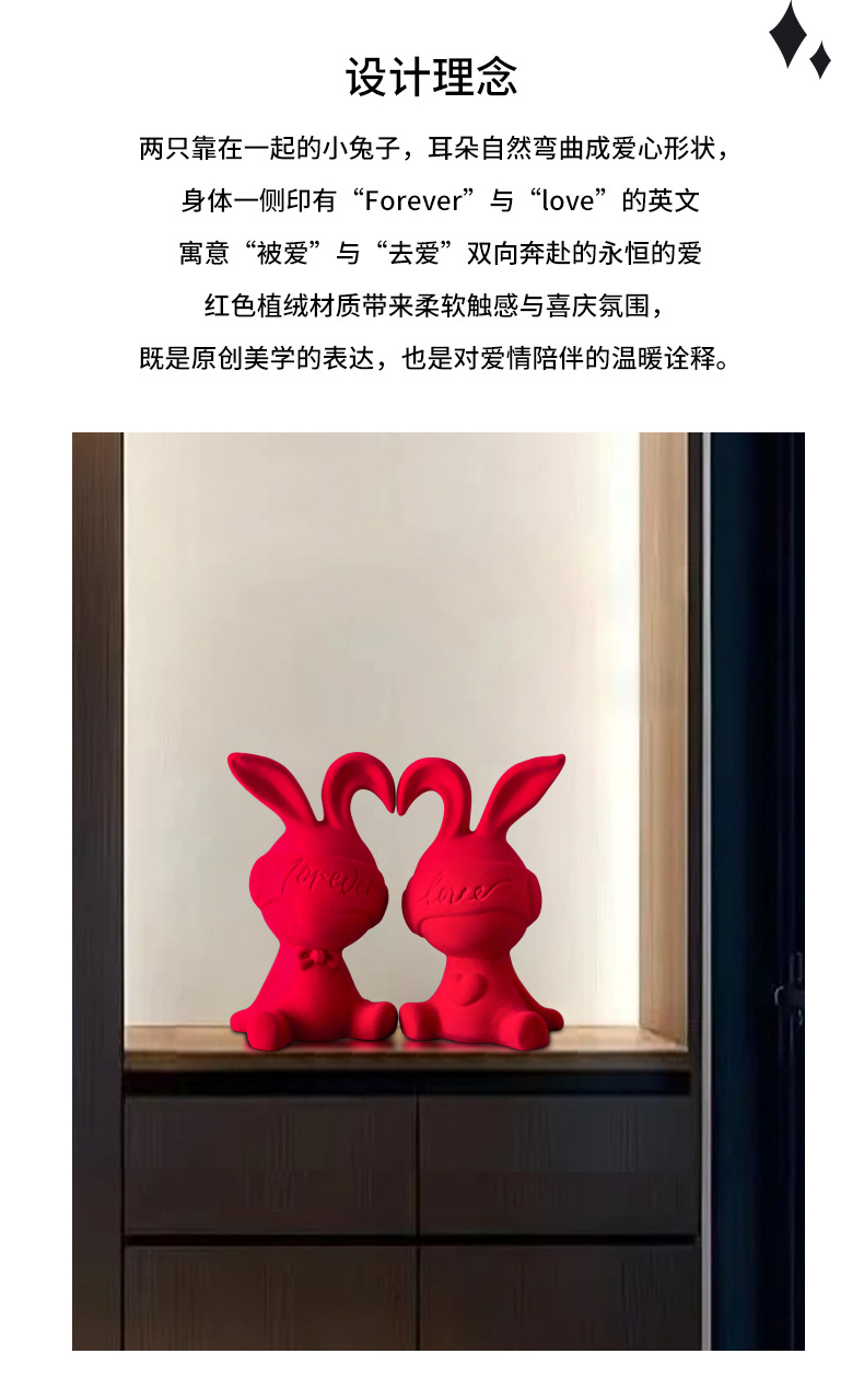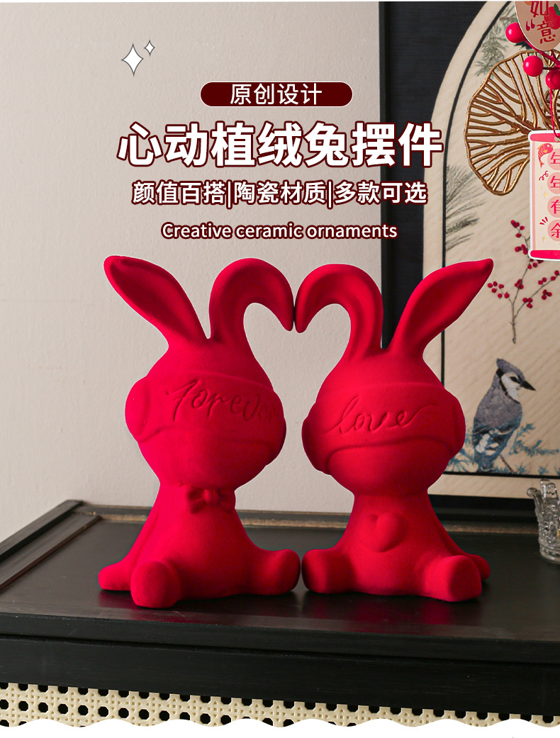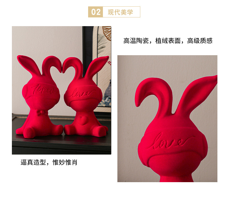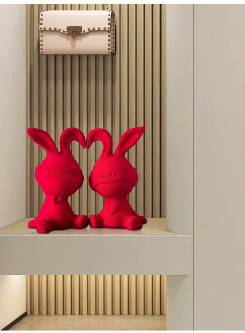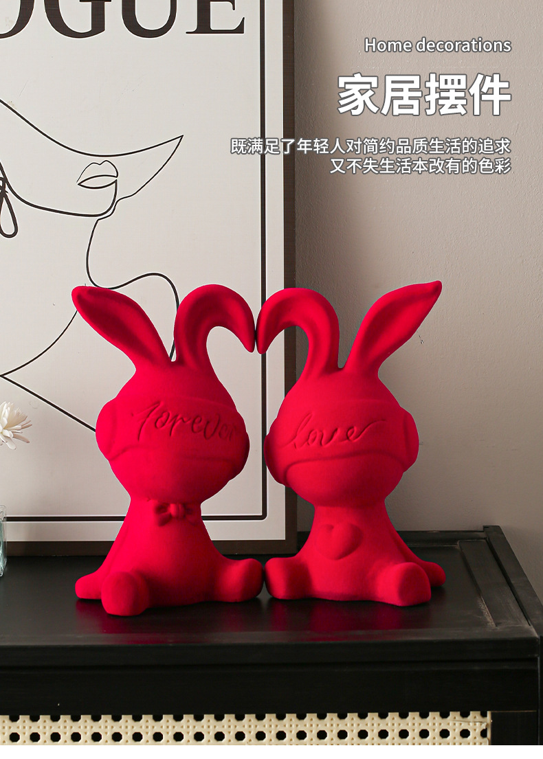 创意心动植绒兔坐姿摆件轻奢客厅酒柜电视柜入户玄关高送礼装饰品