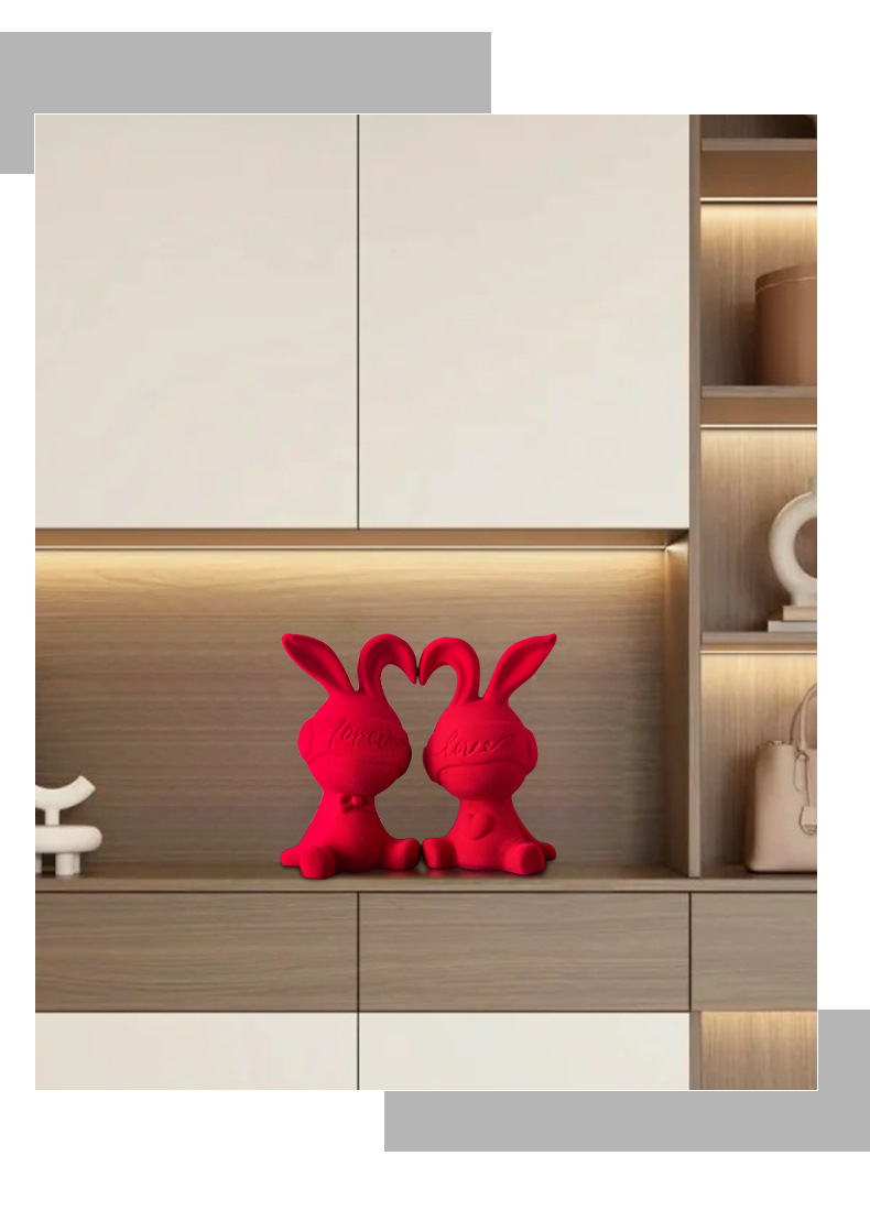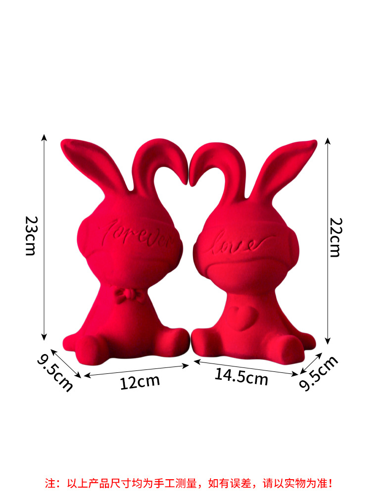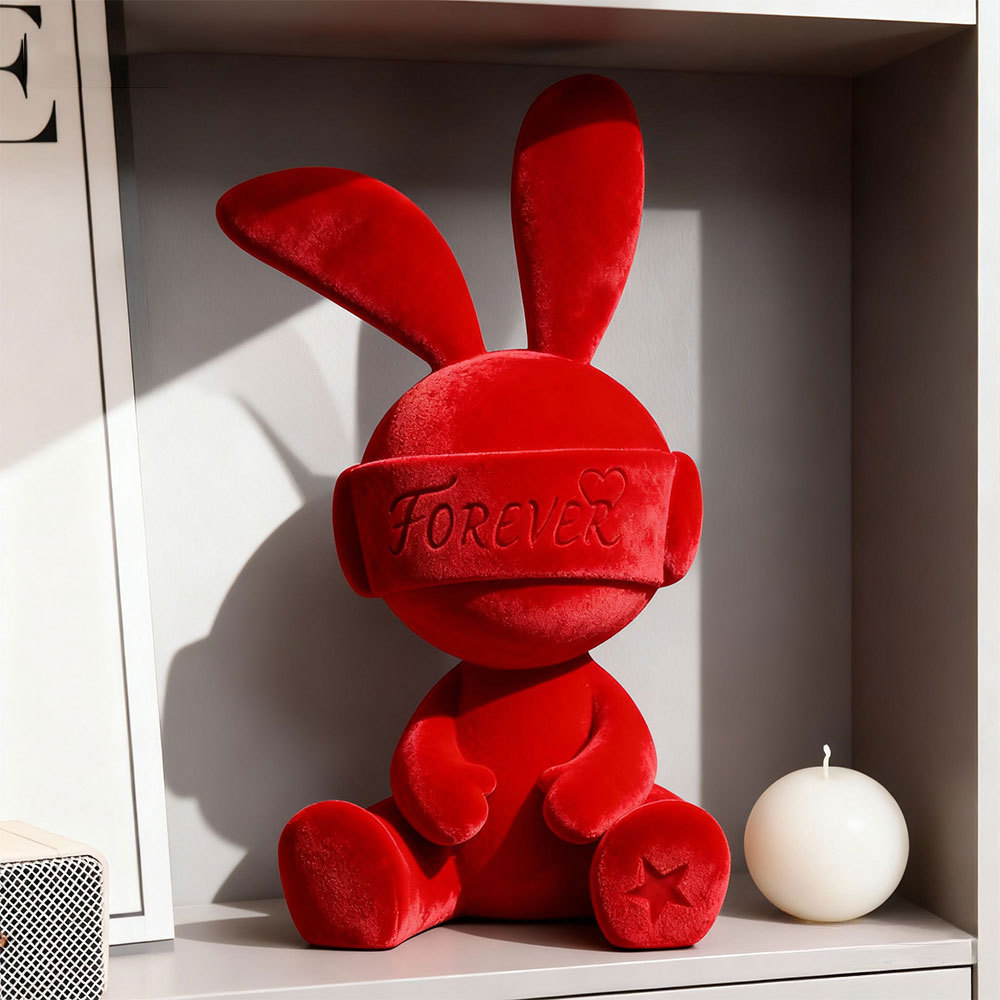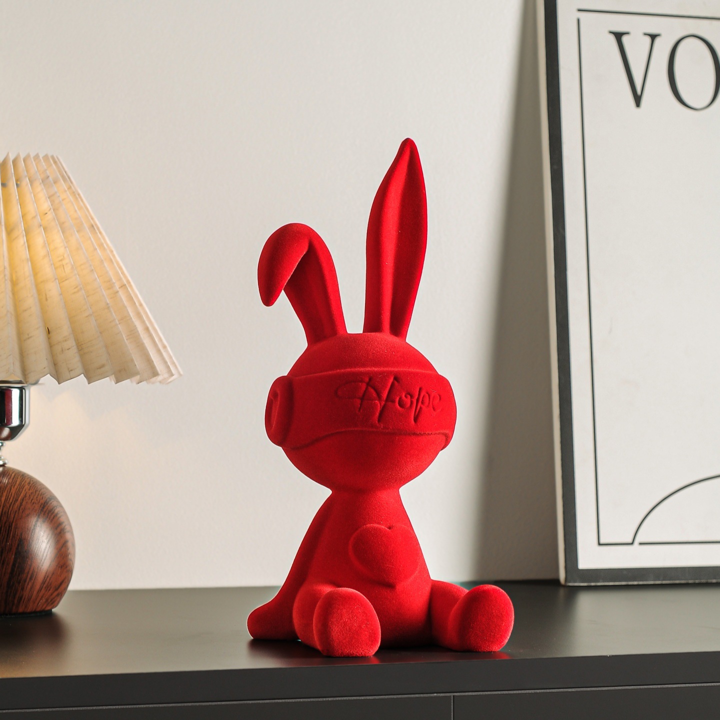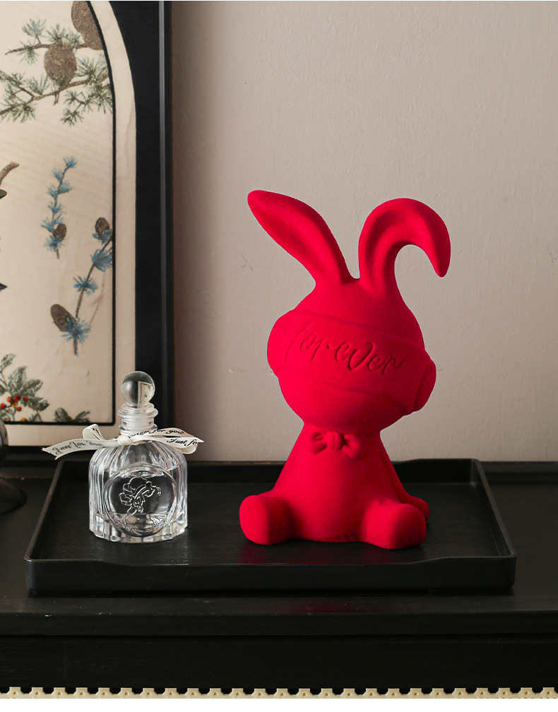 宏赫红色兔子坐姿摆件创意公仔客厅桌面入户玄关电视柜感装饰品