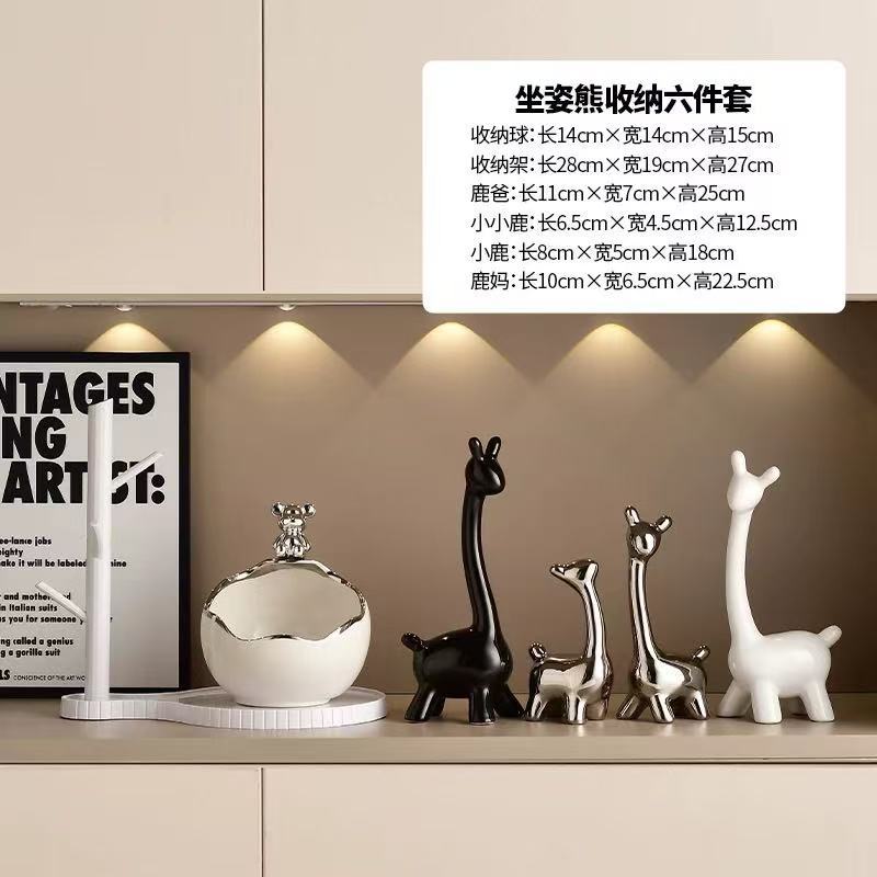 玄関の鹿一家四人置物工芸品、リビングのテレビ台、ワインキャビネットの装飾品、陶器置物、家庭用