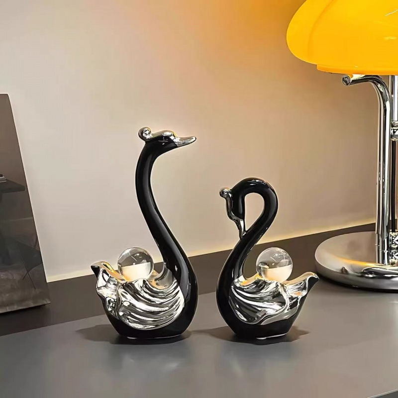 (トランペット) 豪華なリビングカップルの白鳥が高級感のある家庭の酒場テレビキャビネットの装飾品を飾っている