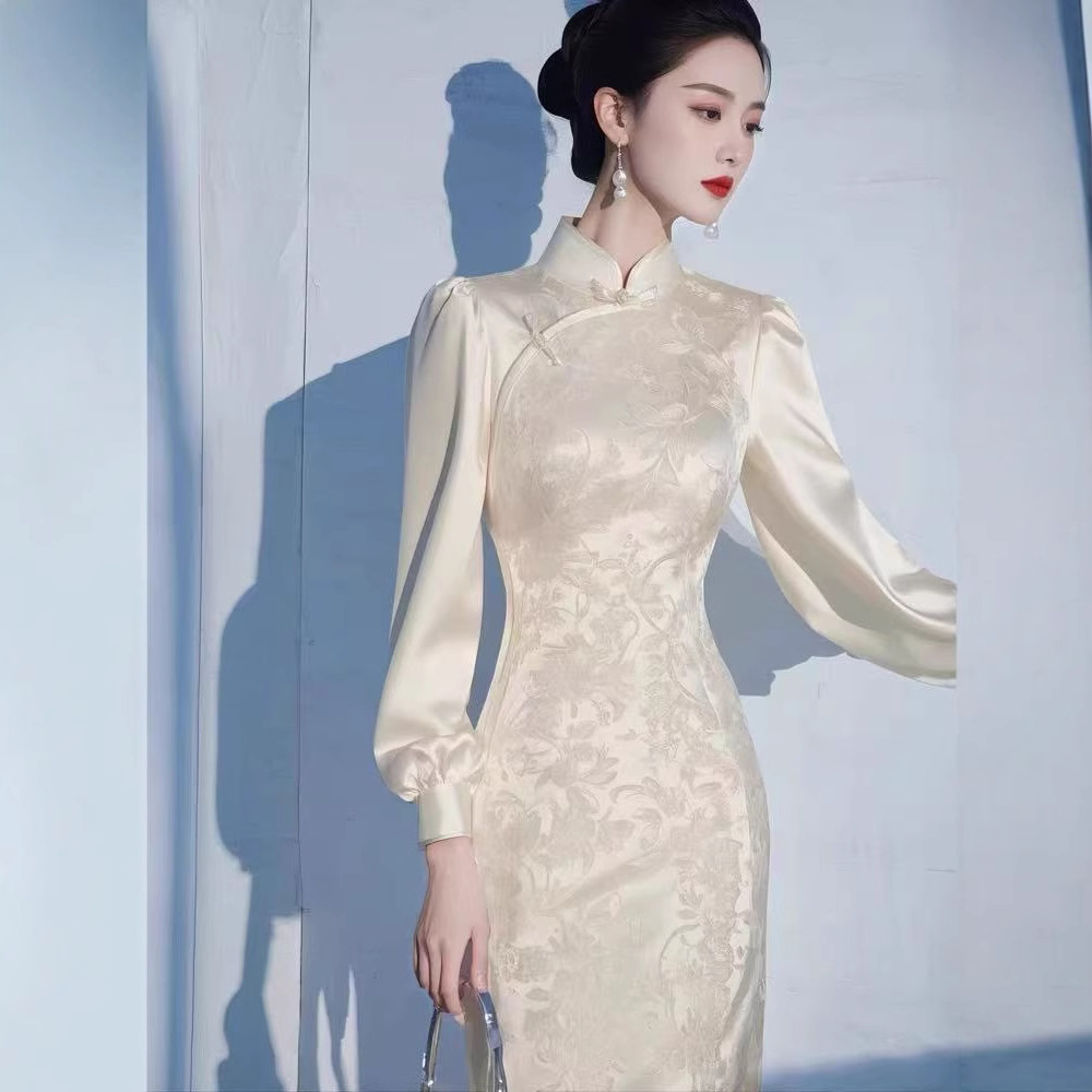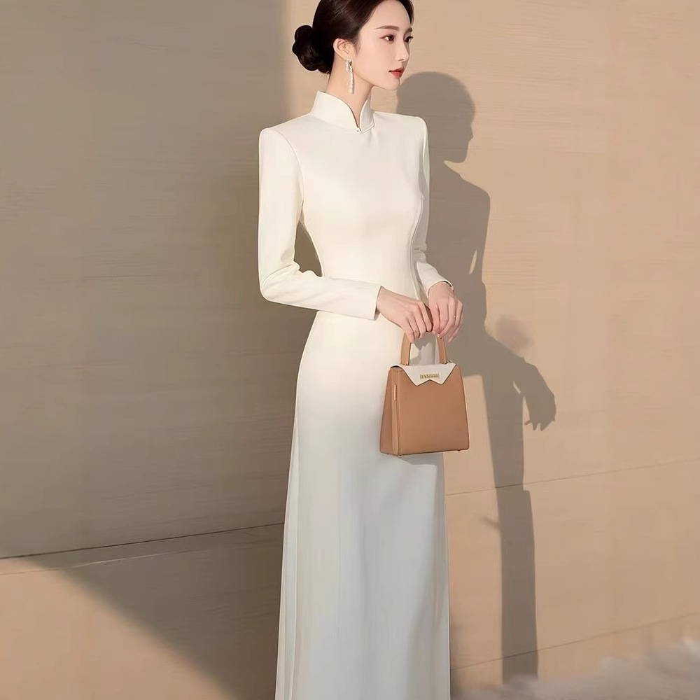 新中国式の白いチャイナドレスのワンピース2025春の新型の綺麗で独特な軽豪華な高級感があります。