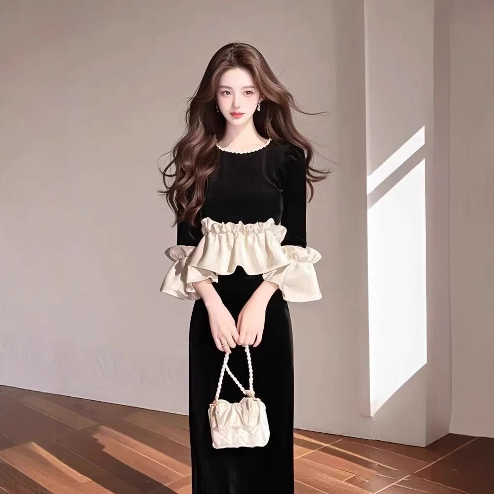2024年冬富家千金高級感気質名媛高級小香風黒セーターズボンセット女