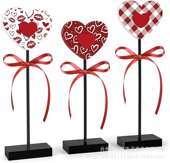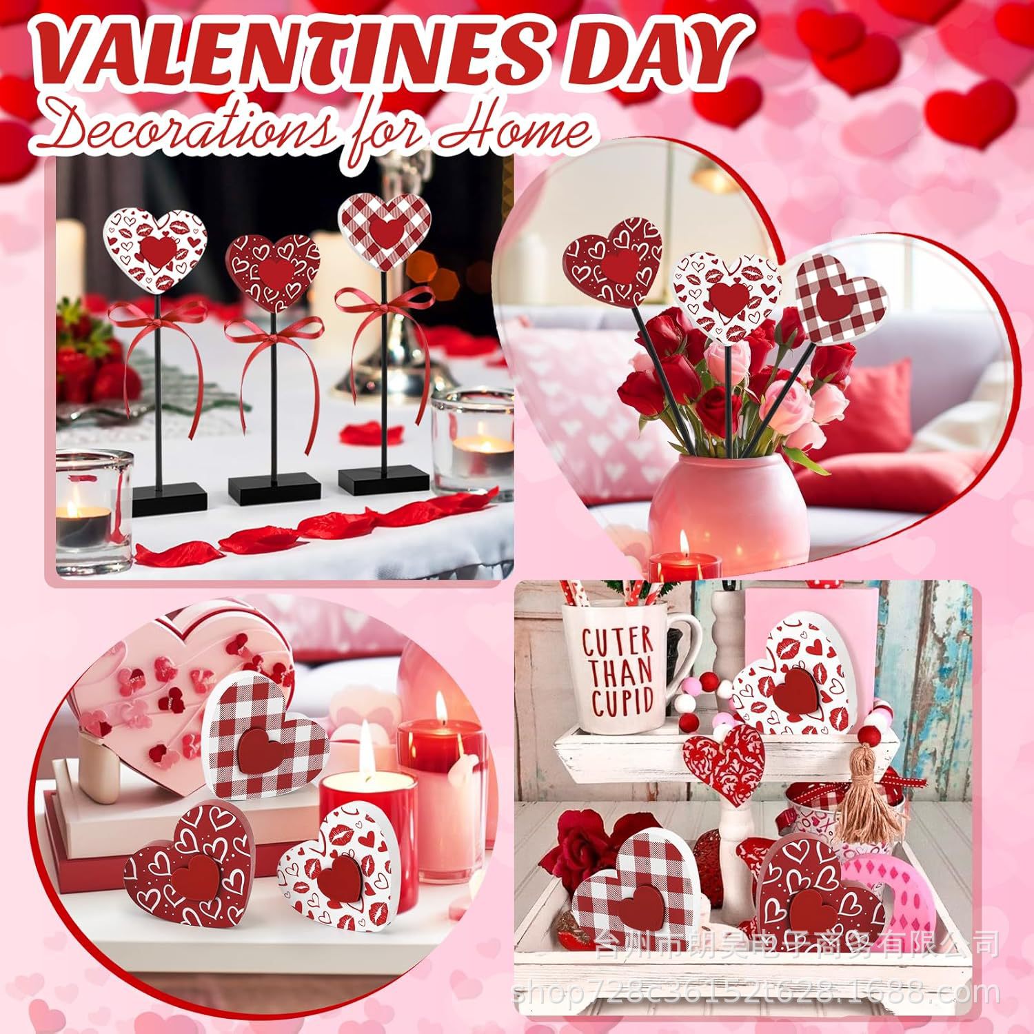 跨境木质情人节摆件爱心造型氛围感派对摆饰可拆卸情人节装饰摆件