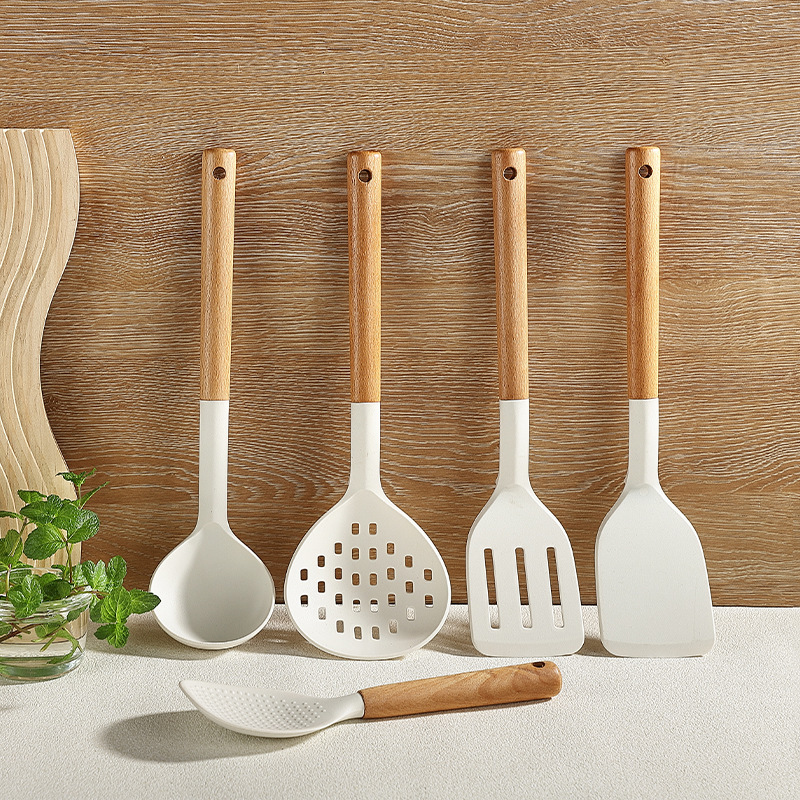 クロスボーダー木柄シリカゲル調理器具シリカゲルシャベルスプーン炒め料理鍋シャベルキッチンキッチンスプーン調理調理器具シャベルセット