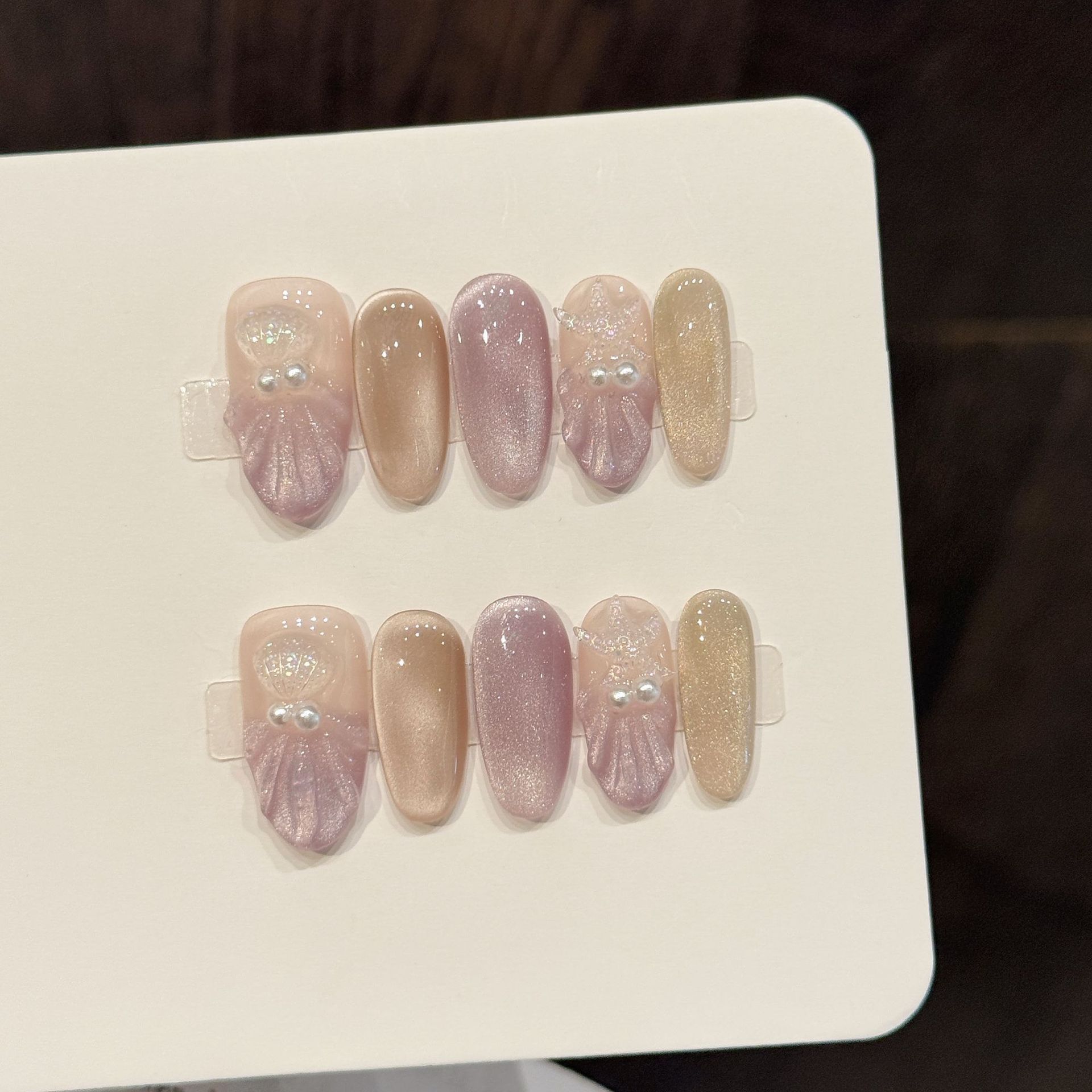 艺禾W系列【柔紫珠韵】粉紫渐变珍珠立体手工穿戴甲 温柔仙气显白