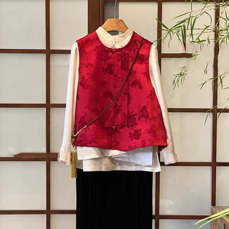 新中国式ファッション洋気独特高級感新中国式国風宋錦紅馬甲女春秋モデル