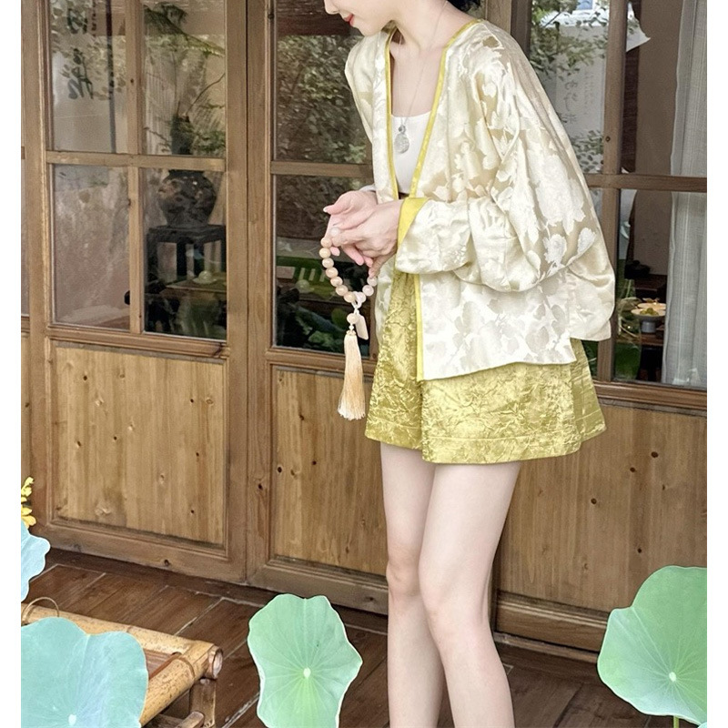2024新中国風黄色盤ボタンコート両面2着パンツ2点セット軽熟風春女装