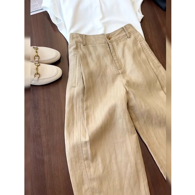素晴らしい商品です!オフホワイトの高品質の9点カジュアルパンツ、快適で通気性のある女性用ハイウエストスリムバルーンパンツ
