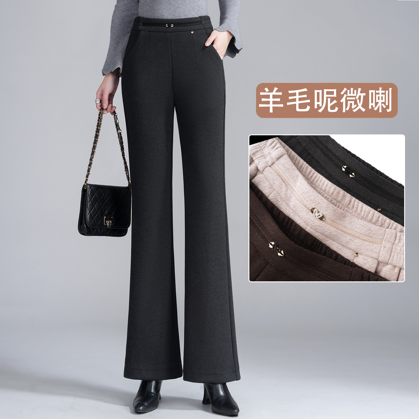 垂感羊毛呢微喇裤女秋冬新款高腰弹力宽松显瘦中年妈妈呢子喇叭裤
