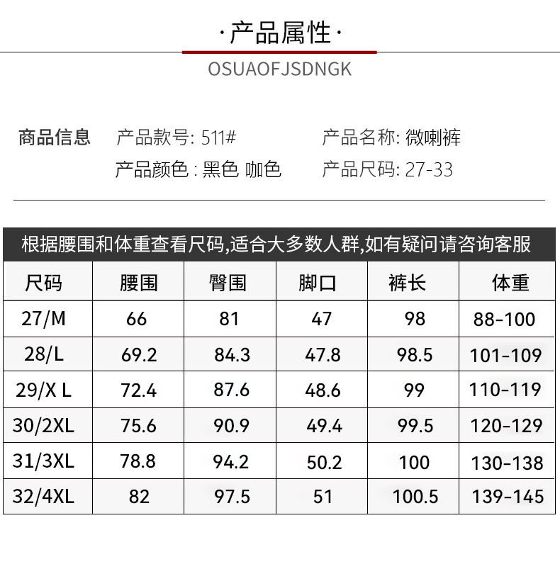 尺码 S 26码推荐85-95斤,M 27码推荐95-105斤,L 28码推荐105-115斤,XL 29码推荐115-125斤,2XL 30码推荐125-135斤,3XL 31码推荐135-145斤