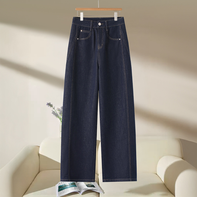 デニムブルーの細身ワイドパンツ レディース 春秋 2025年新作 ハイウエスト ゆったりデザイン デニムストレートパンツ ずっしりとした履き心地