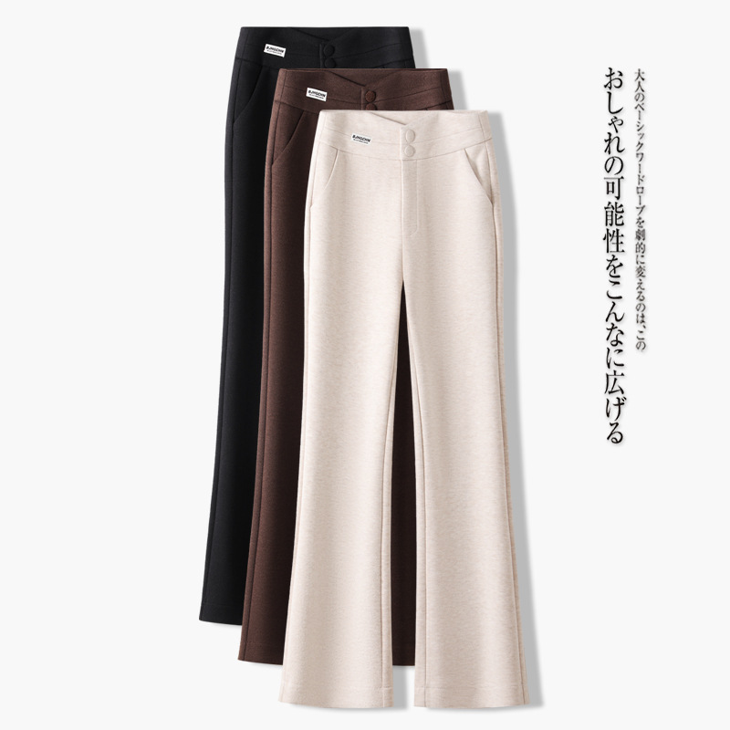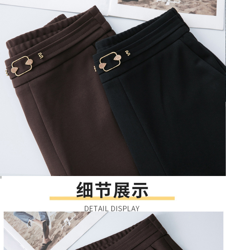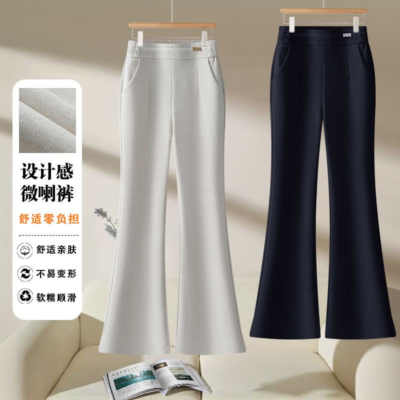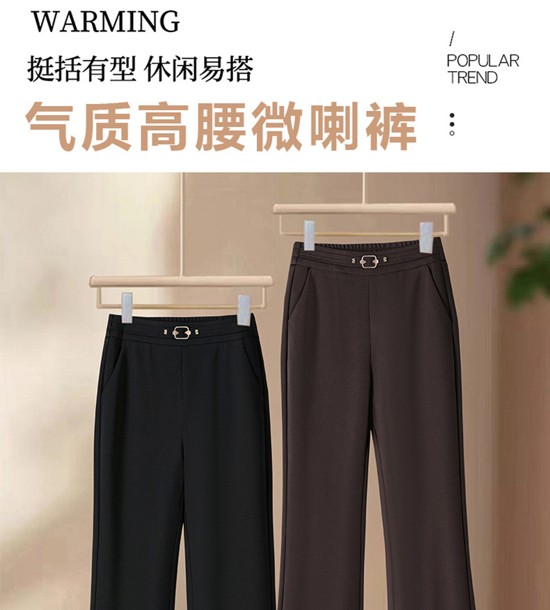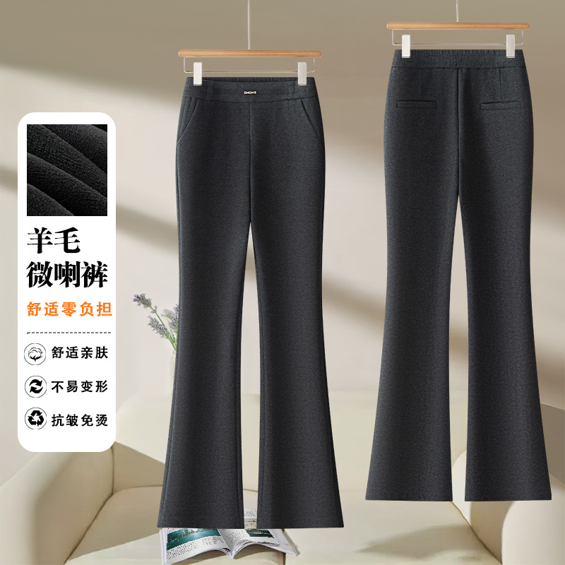 2025秋冬新款流行黑色加绒微喇裤女端庄大气妈妈裤子冬加厚喇叭裤