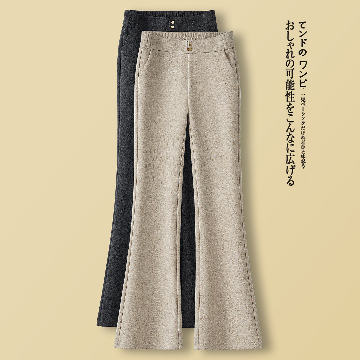 毛のラッパのズボンの女性の秋冬の2024の新型のカジュアルなレギンスのズボンの冬の高い腰の垂感は厚くてやせているウールのズボンを現します。