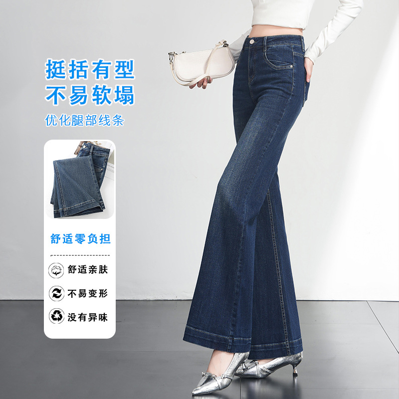 LULUフランスのレトロでやせているラッパのズボンの女性2025春の新型のゆったりしている高腰のペンダントのデザイン感のジーパン