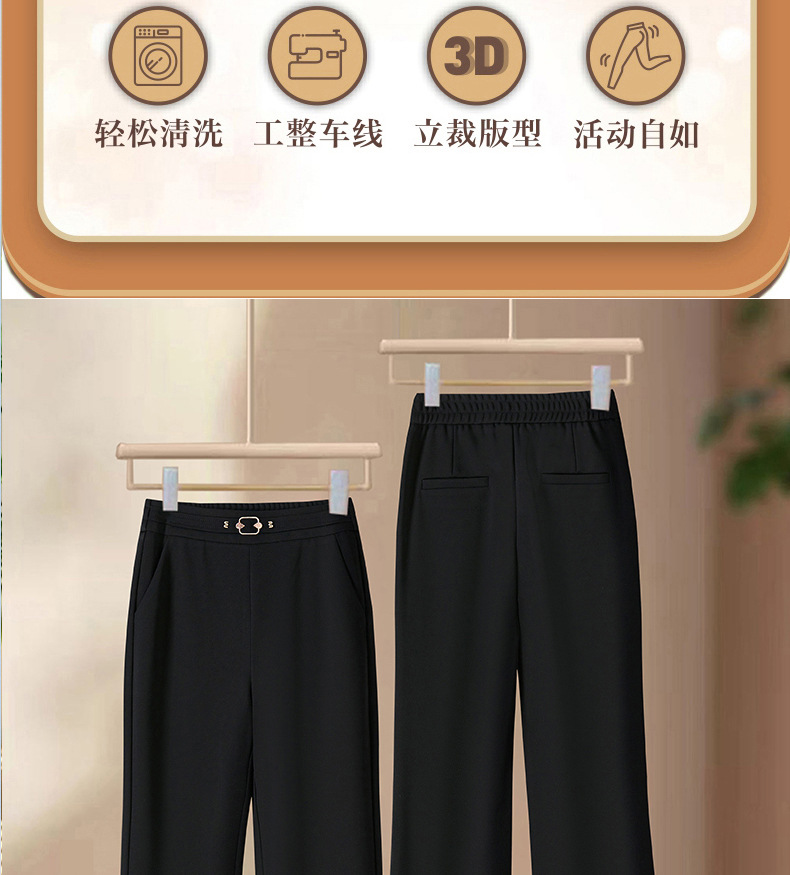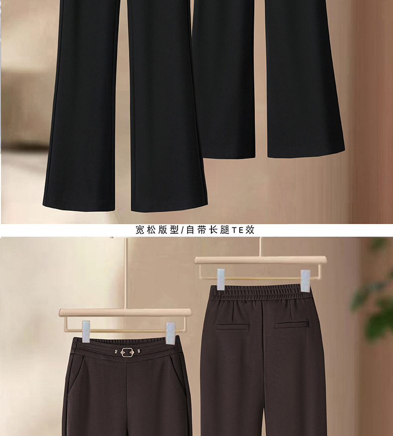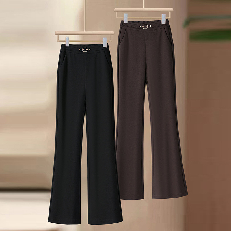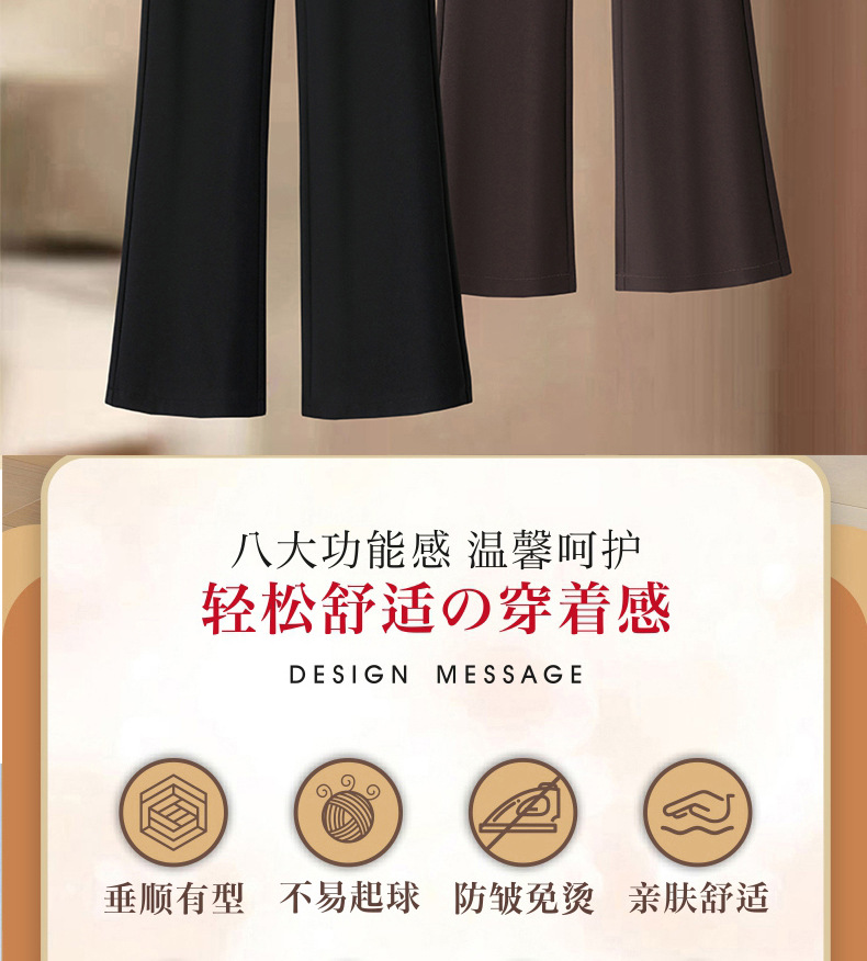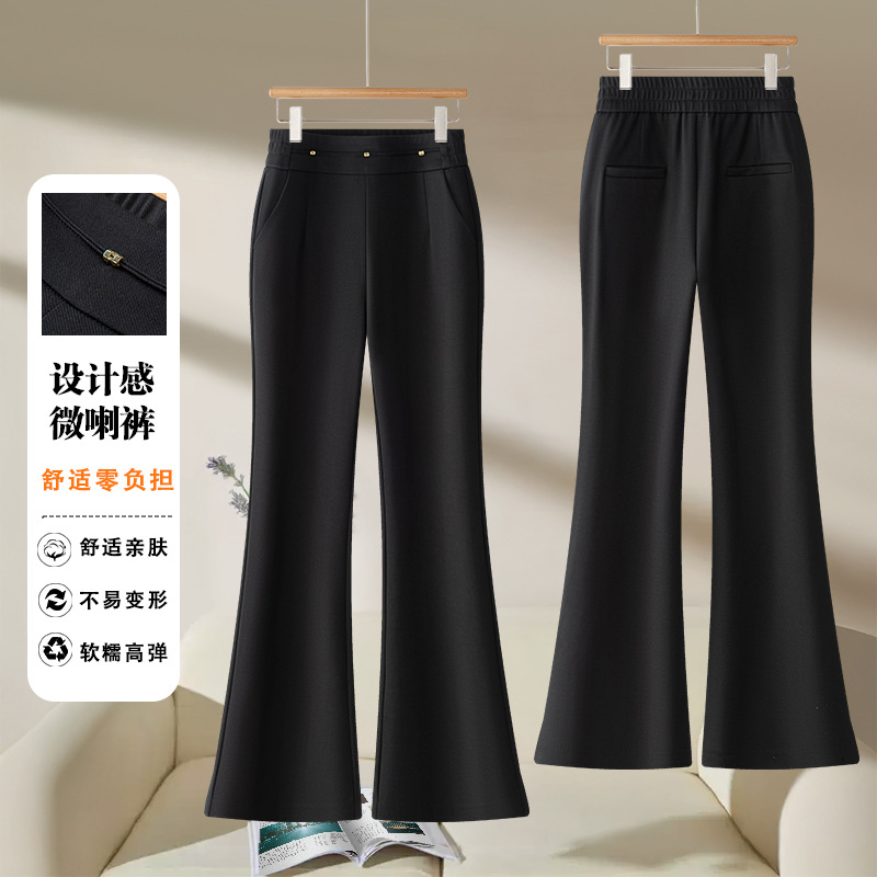 2025秋冬新款黑色微喇西装裤女松紧腰垂感大码梨形身材妈妈喇叭裤