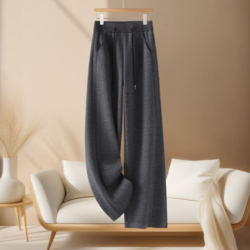 目を閉じて怠惰なウールのズボンに入る女性秋冬2025直筒カシミヤの狭い版のワイドパンツの毛です。