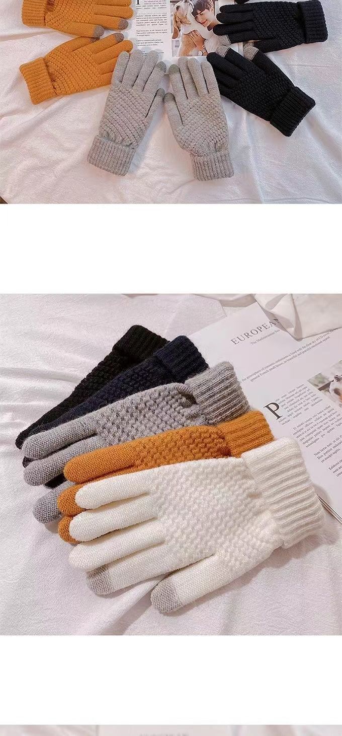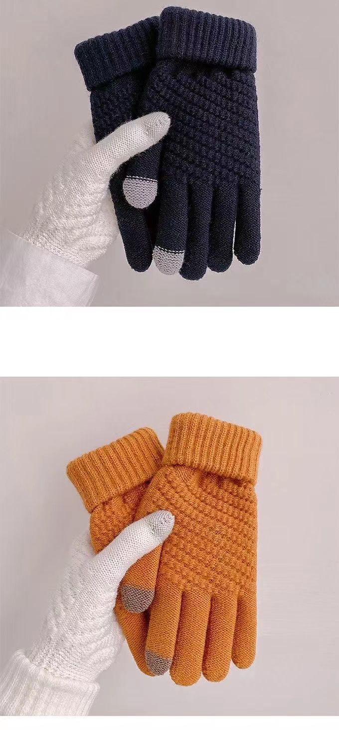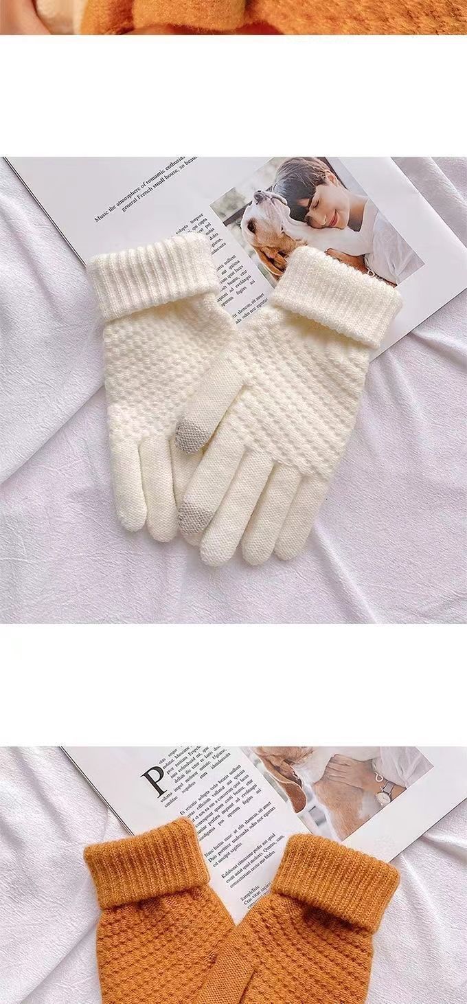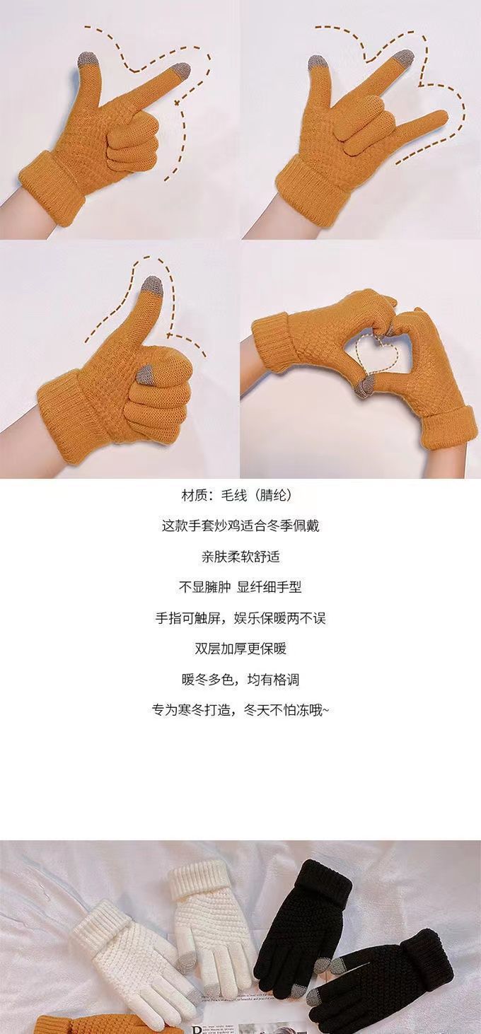 手袋の女性は冬にベルベットを厚くして韓国版の防寒かわいい自転車に乗ってタッチパネルの保温毛糸ニット手袋卸売りをした