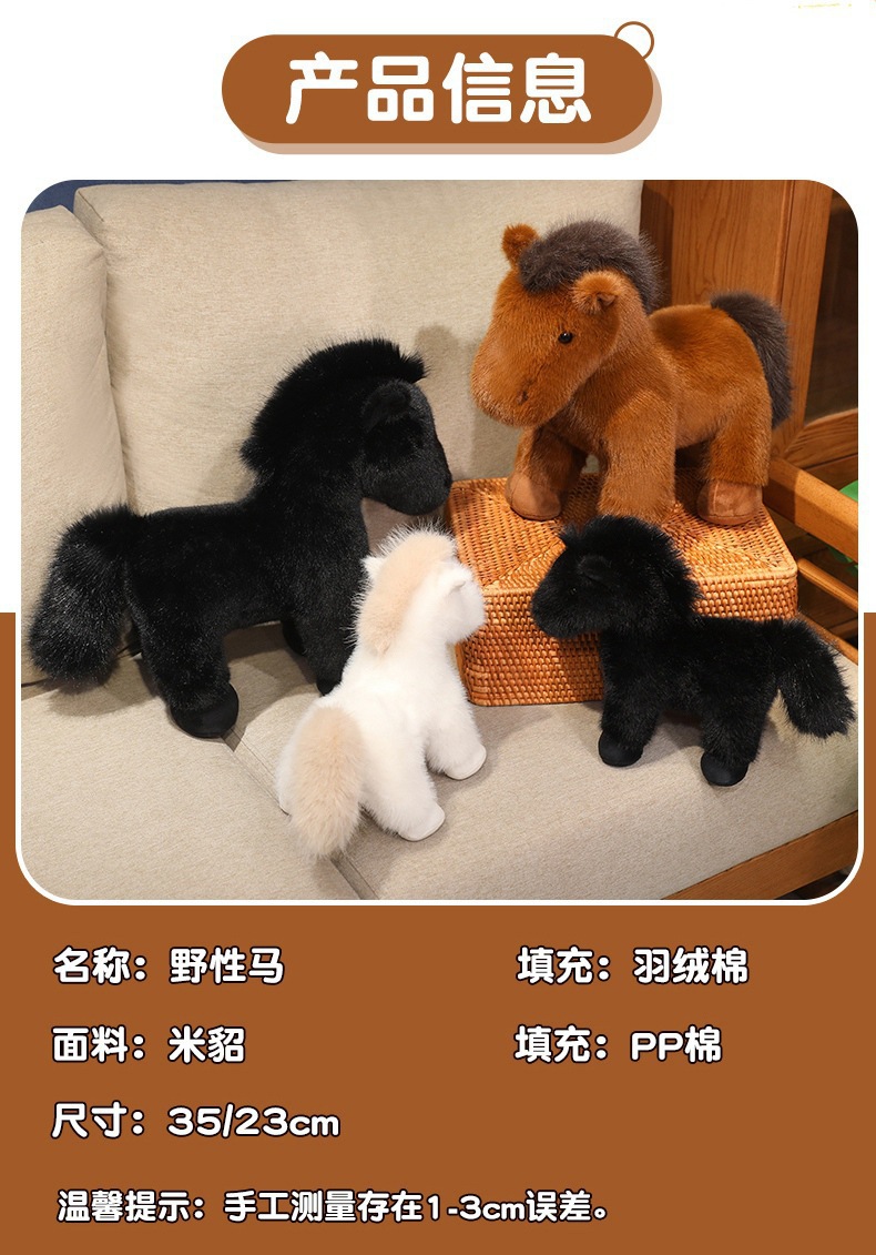 公仔毛绒玩具可爱礼物摆件野性马睡觉抱枕小马布娃娃仿真儿童玩偶