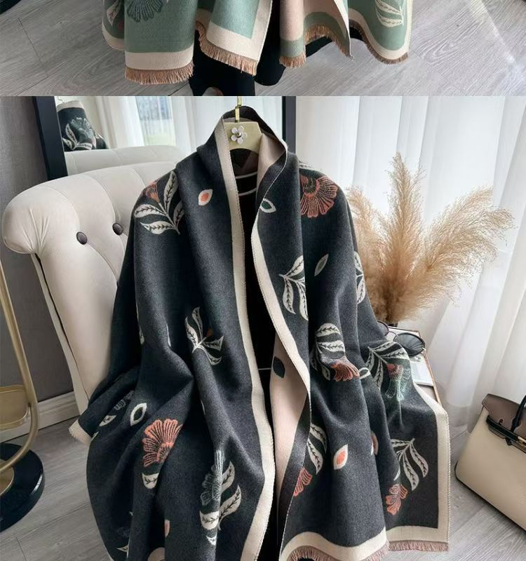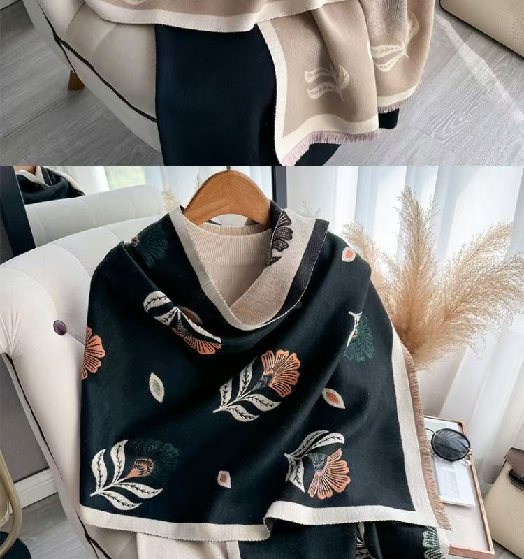 新款小清新花朵围巾秋冬韩系氛围感围脖印花简约仿羊绒保暖披肩女