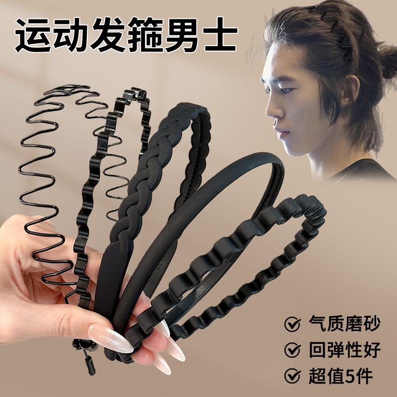メンズブラックメタルカチューシャ洗颜用カチューシャスポーツステルス背圧髪固定カチューシャ