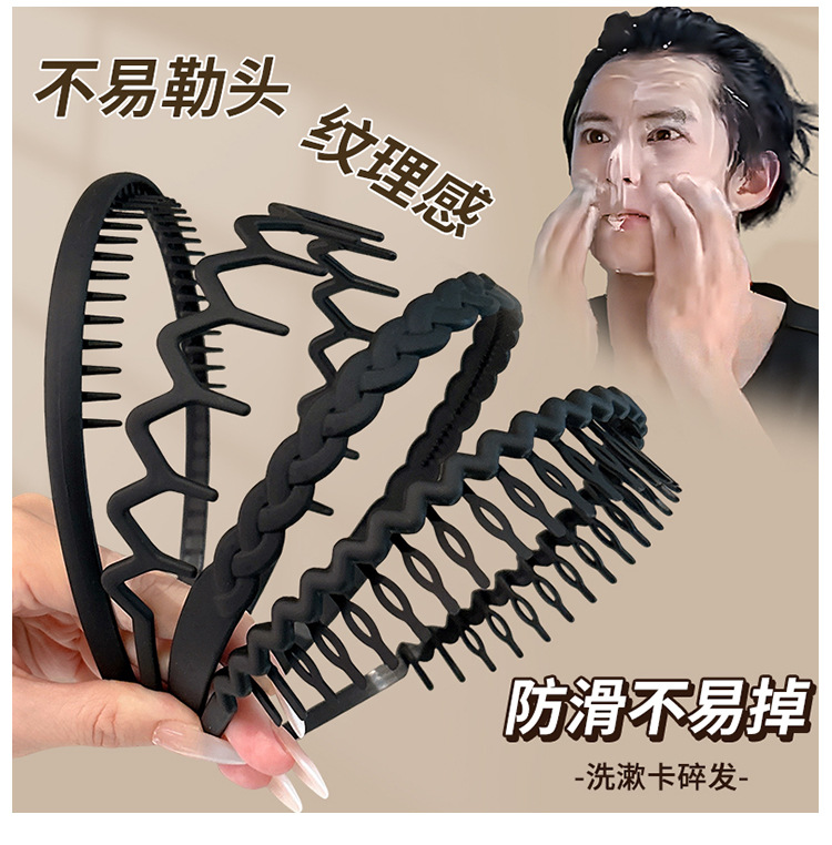 2025新款黑色隐形发箍男士洗脸专用带齿防滑头箍男生发捆压发发卡