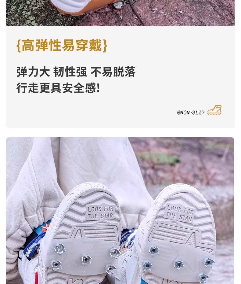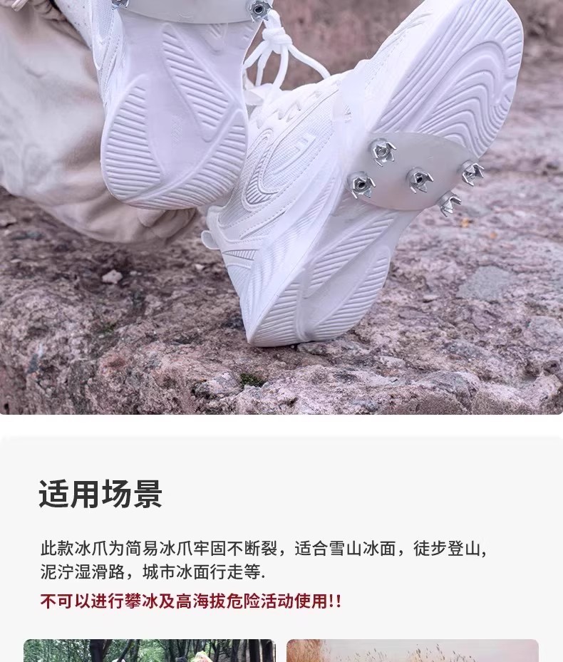 户外隐形五齿冰爪防滑鞋套儿童透明雪地鞋钉链冬下雪天鞋底贴神器