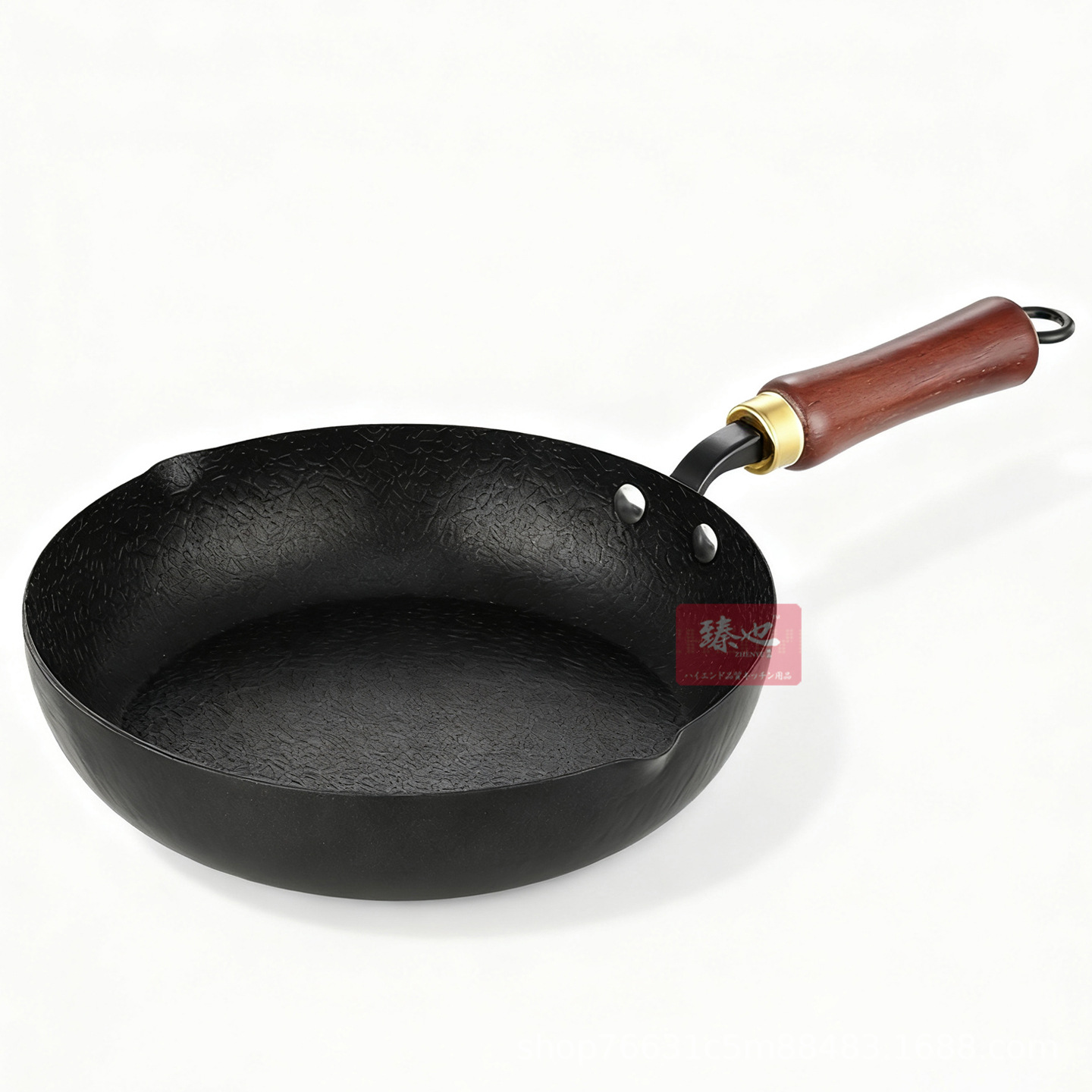 古法大腹鍋正統章丘は鉄鍋の小さい炒め鍋の炒め物の煮物のスープの24cmの小さい鉄鍋の手の鍛造の煮物の鍋にくっつかないです。