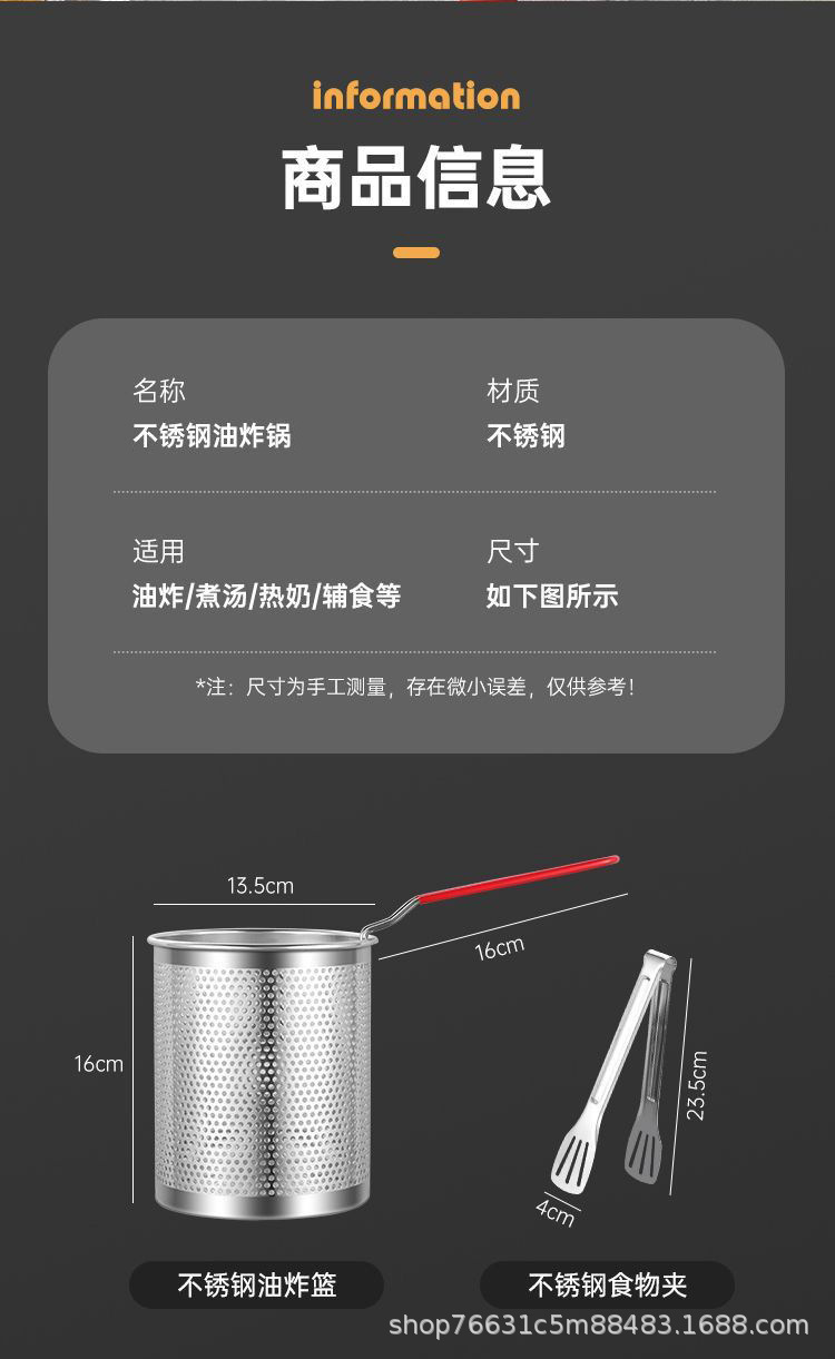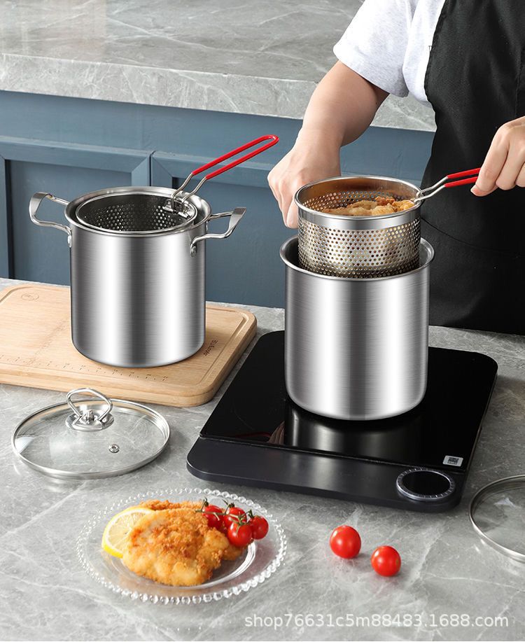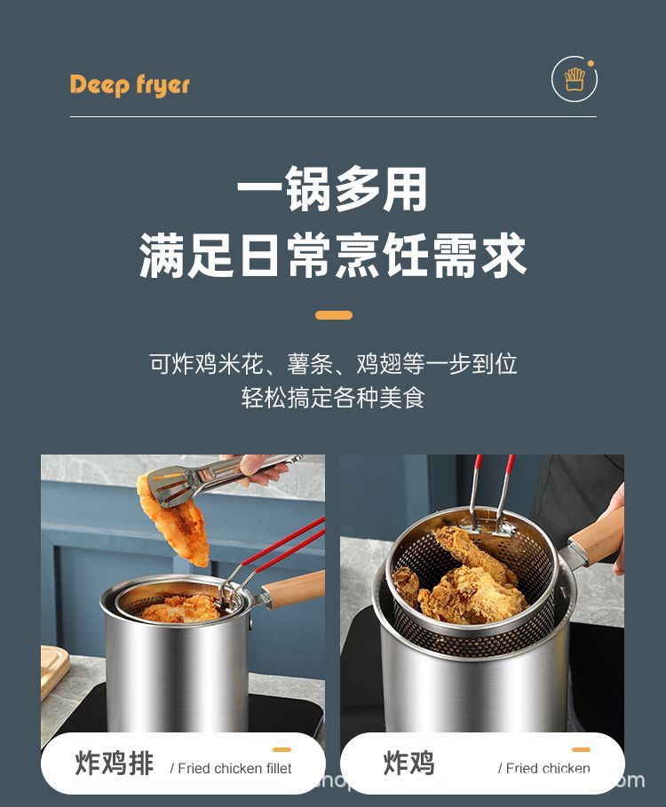 不锈钢加厚家用多功能天妇罗油炸锅滤网炸鸡炸薯条专用油锅串串锅