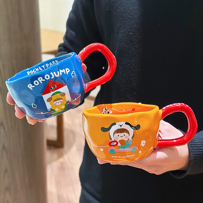 かわいい落書きマグカップ陶磁器コップ家庭用女子オフィス牛乳コーヒー朝食カップヨーグルトボウル
