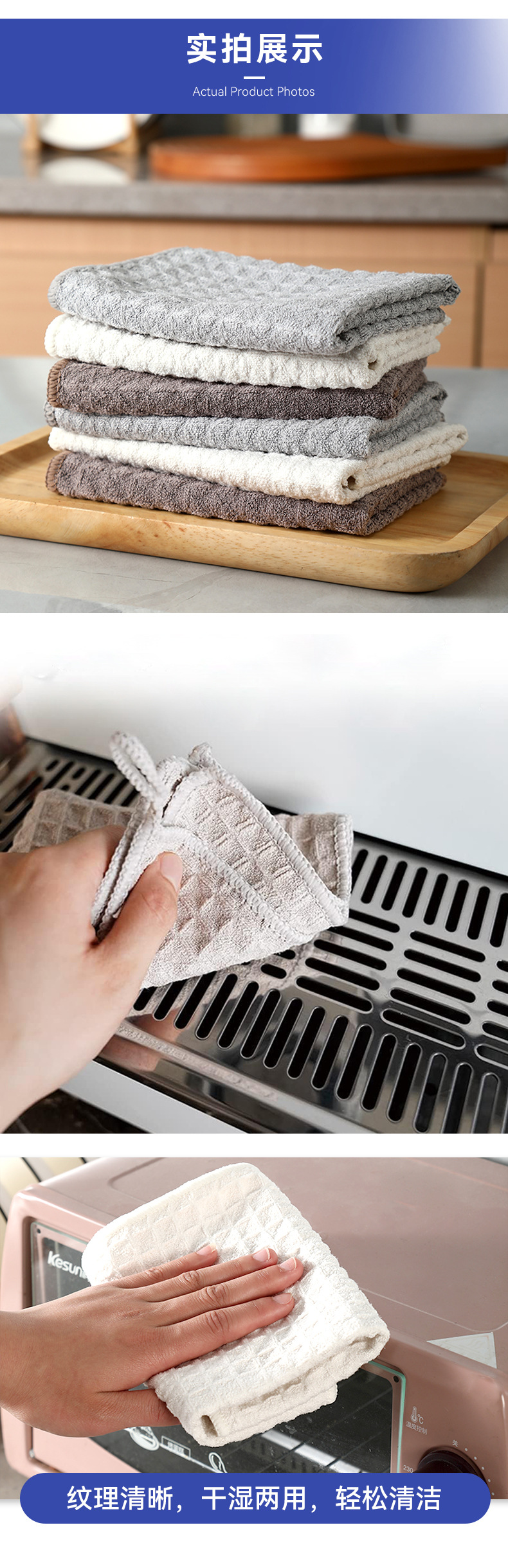 国境を越えた現物プリントタオル台所は吸水して毛が落ちにくい皿洗い布の多機能油汚れ雑巾を厚くする