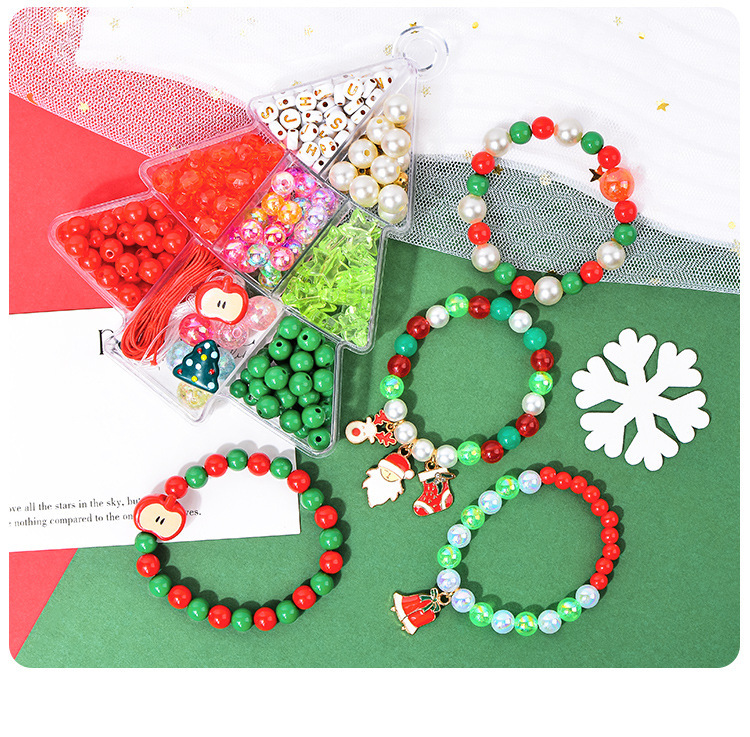 跨境新款圣诞卡通手链圣诞树新年礼物儿童diy益智玩具串珠批发