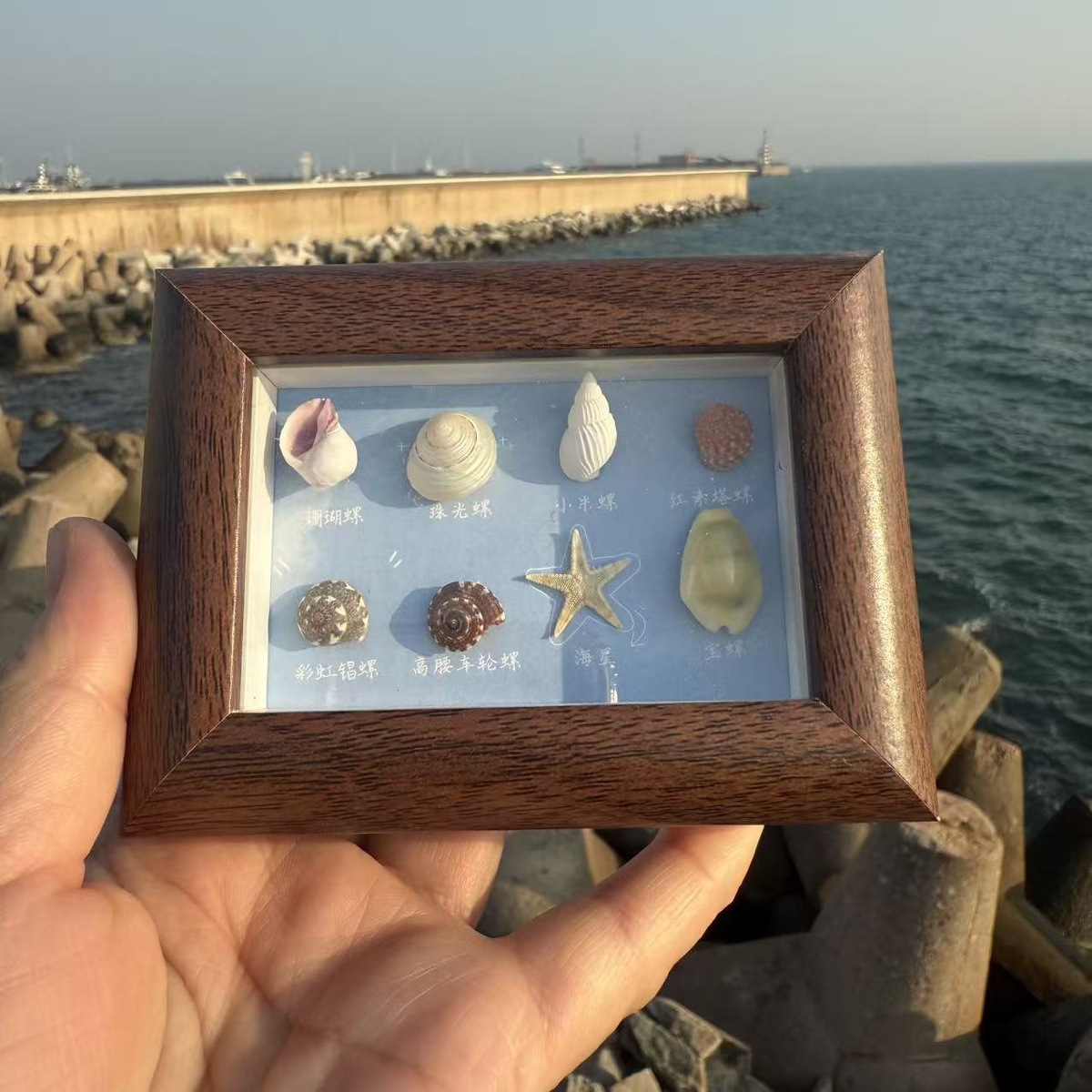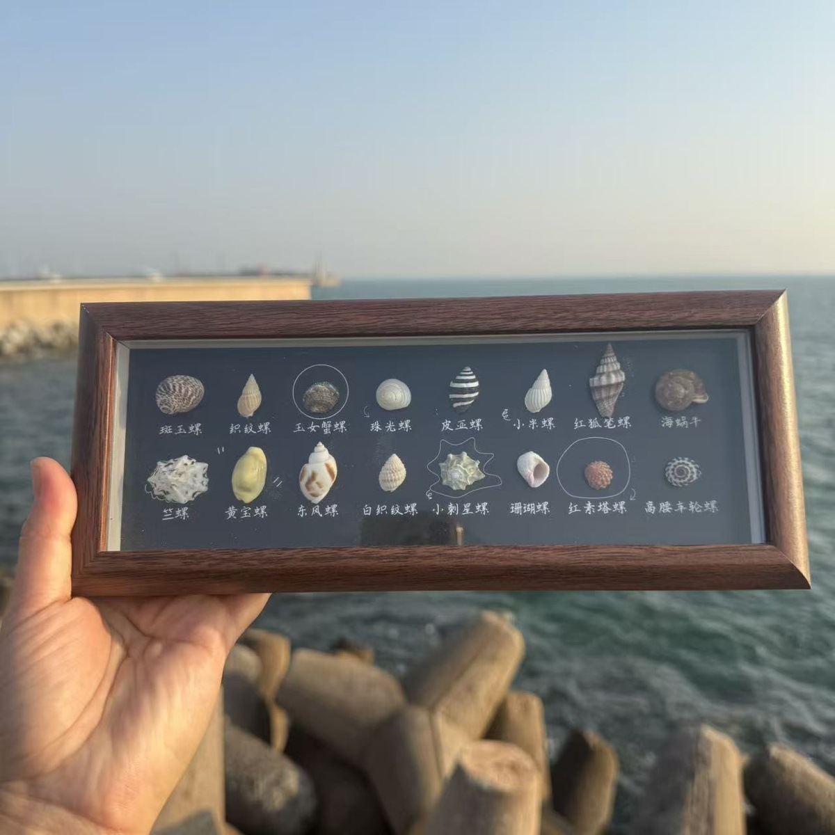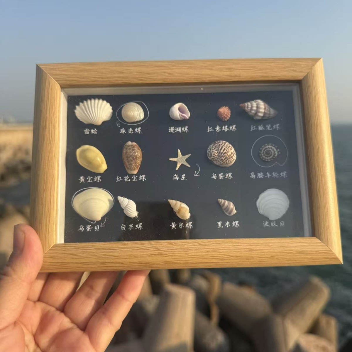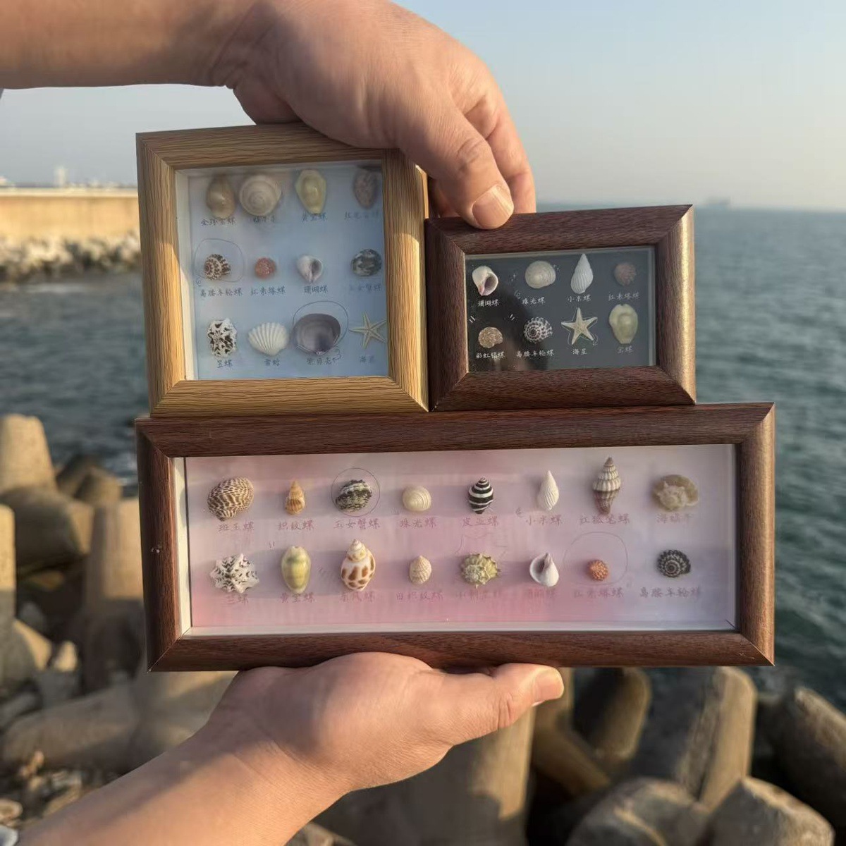 天然贝壳海螺相框摆件家居装饰创意标本diy手工艺品海边创意礼品