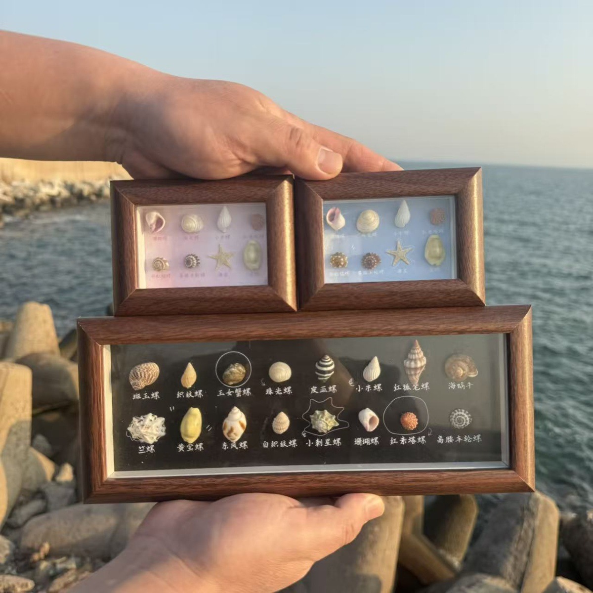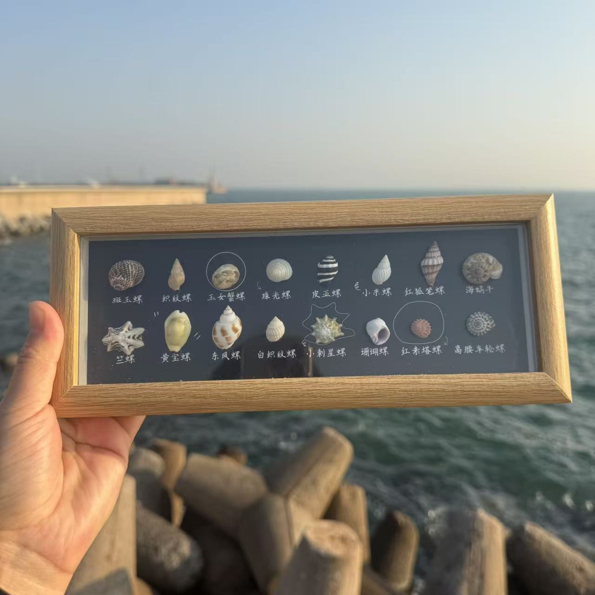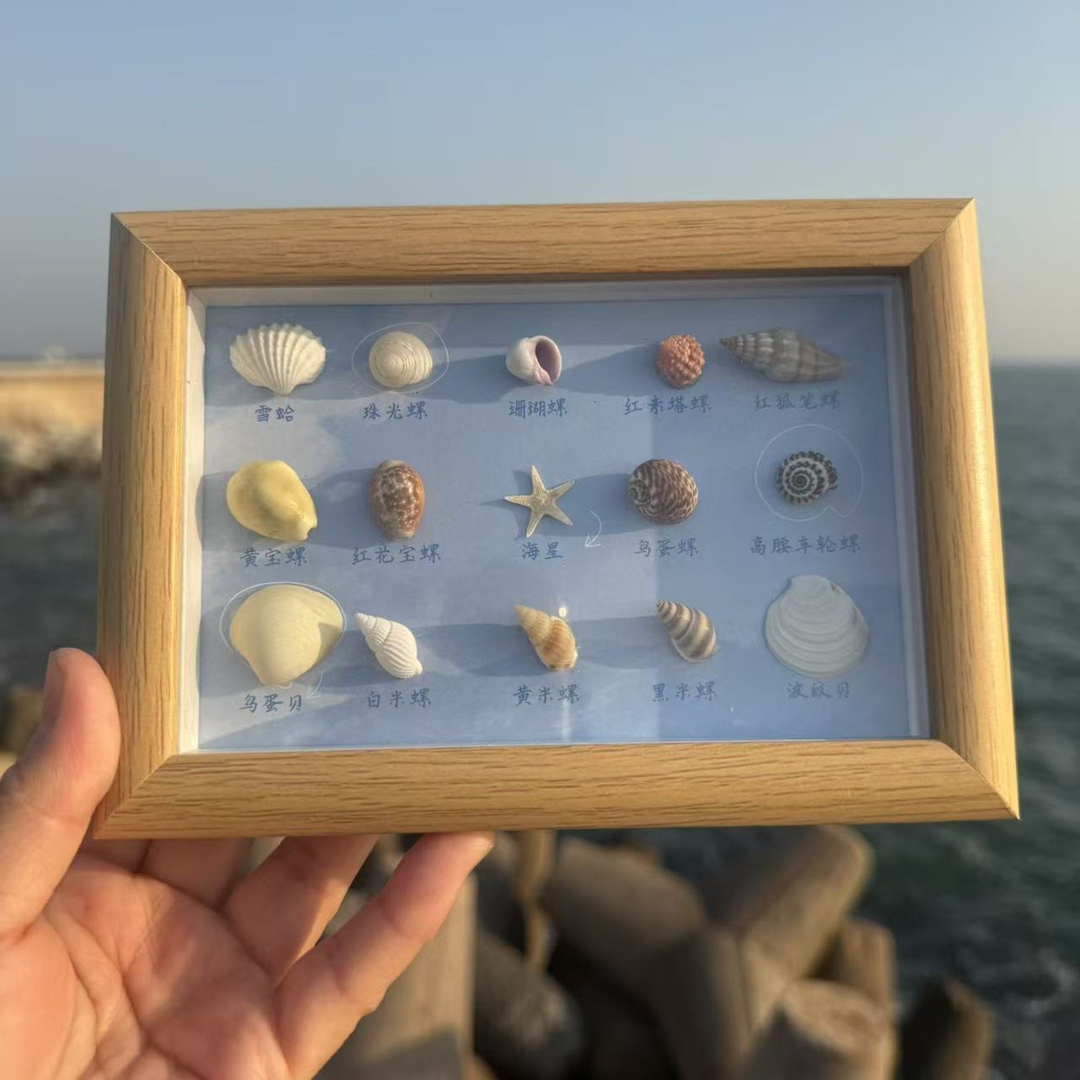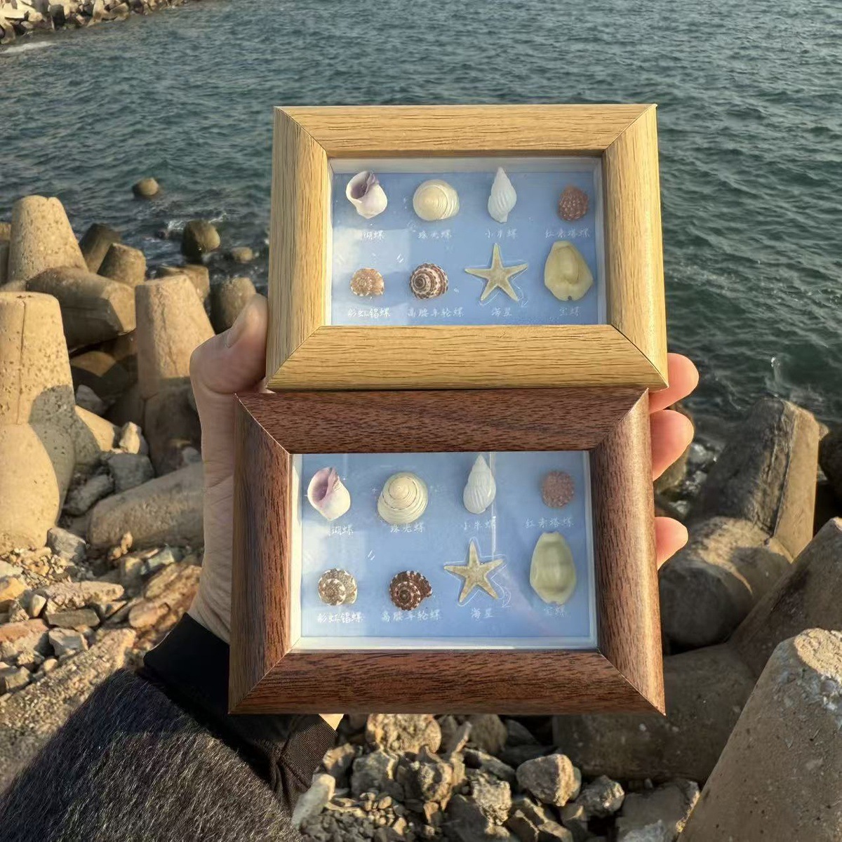天然贝壳海螺相框摆件家居装饰创意标本diy手工艺品海边创意礼品