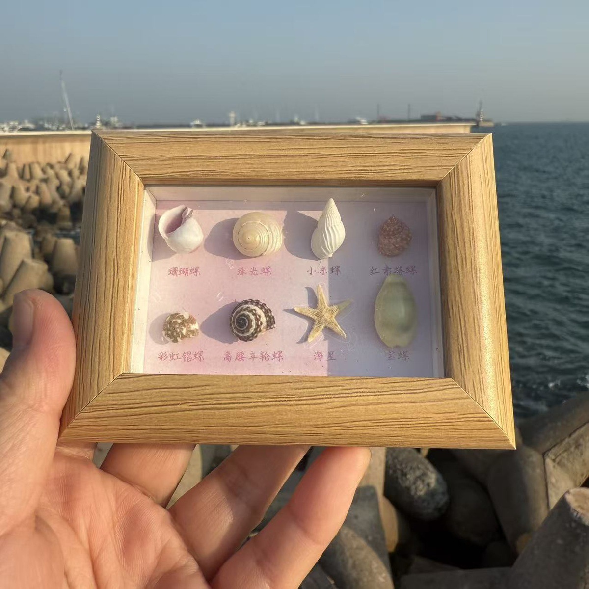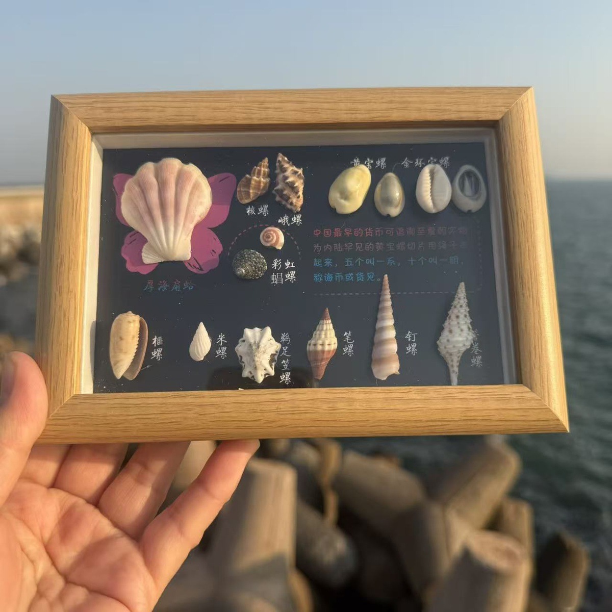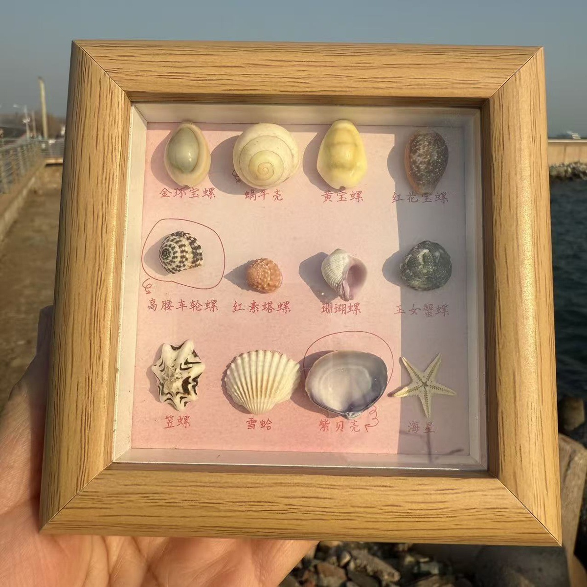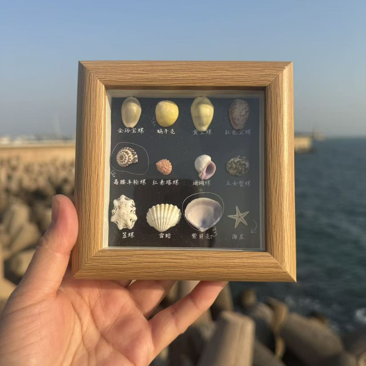天然贝壳海螺相框摆件家居装饰创意标本diy手工艺品海边创意礼品