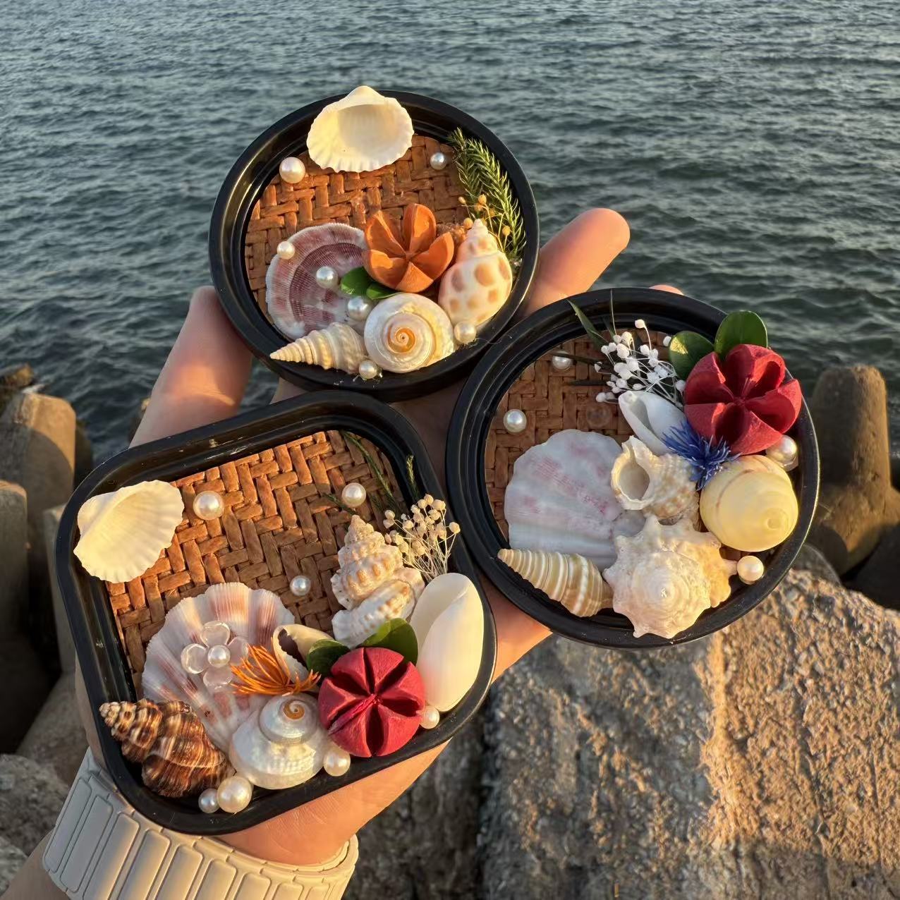 海星贝壳可旋转冰箱贴磁贴旅游纪念天然海螺工艺品肌理画文创