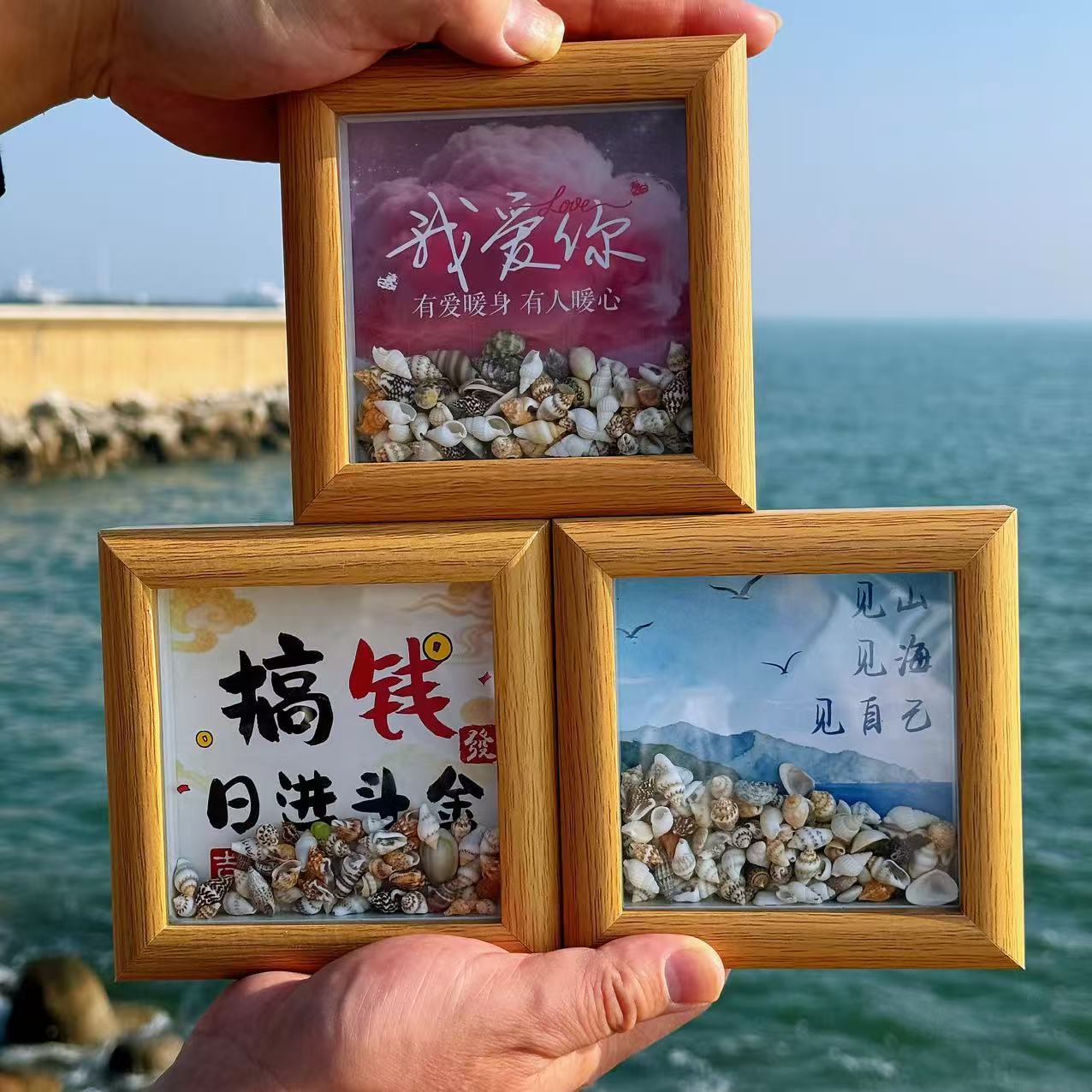 批发天然贝壳海螺海星相框生日礼物画框中空正方形摆台旅游纪念品